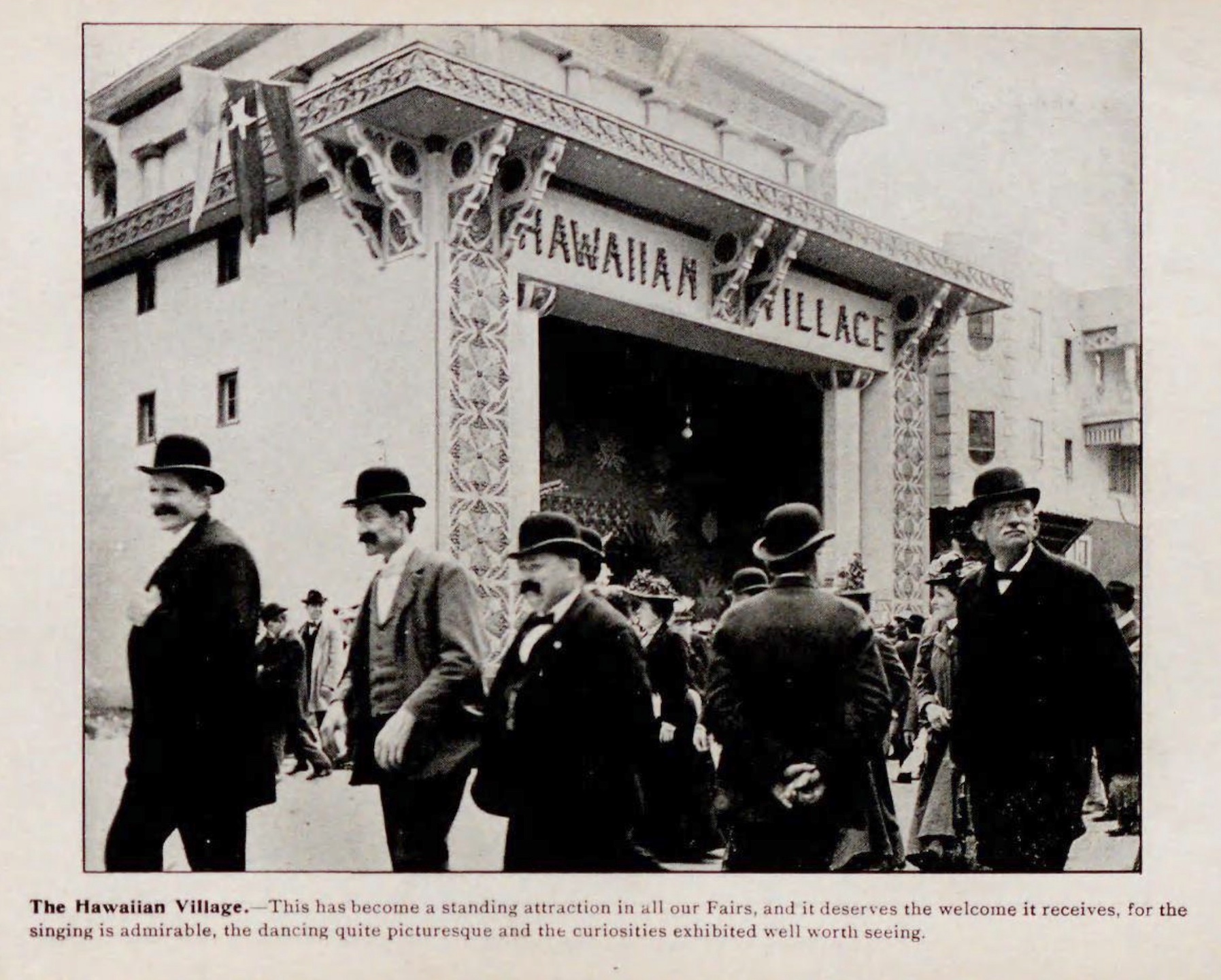 Photo of the Hawaiian Village at the Pan-American Exposition, from Glimpses of the Rainbow City, Pan-American Exposition, at Buffalo (Chicago: Laird & Lee, 1901).