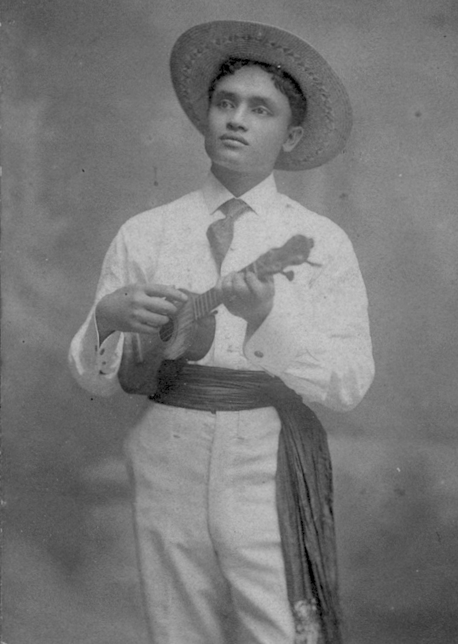 Hawaiian musician playing a ukelele, photographed at the 1901 Pan-American Exposition in Buffalo, New York. From Wikipedia.