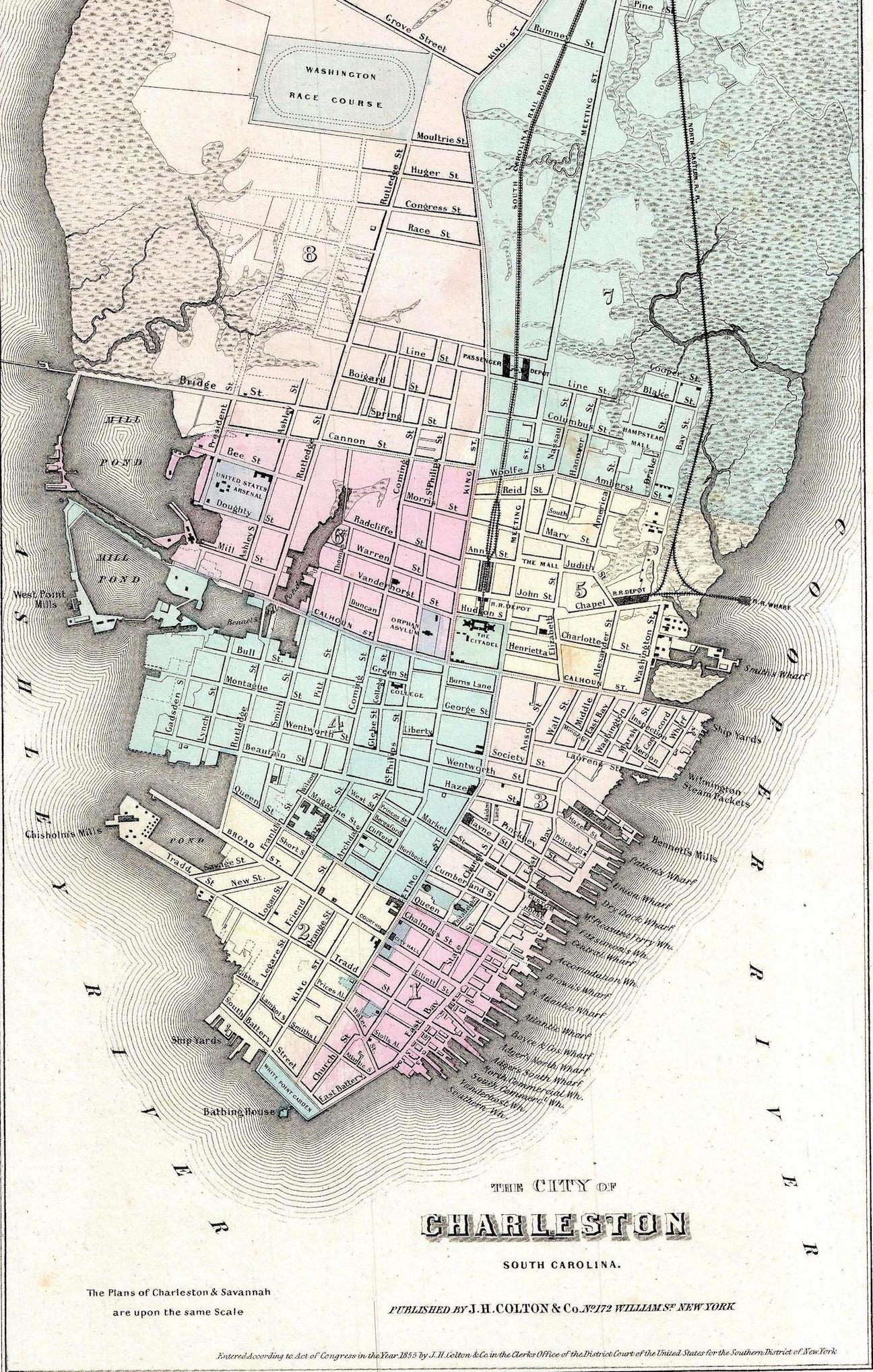 Within the confines of urban Charleston, from the colonial period to the twentieth century, there were always more eyes to witness the activities of boys and men of all ages seeking to cool their skin in the brackish water surrounding the peninsula between the rivers Ashley and Cooper. Numerous complaints about outdoor bathing survive in local newspapers, which commenced publication in January 1732. Having collected a large sample of such references, I’ve organized the material into a geographical survey of the most prominent urban bathing sites in centuries past.