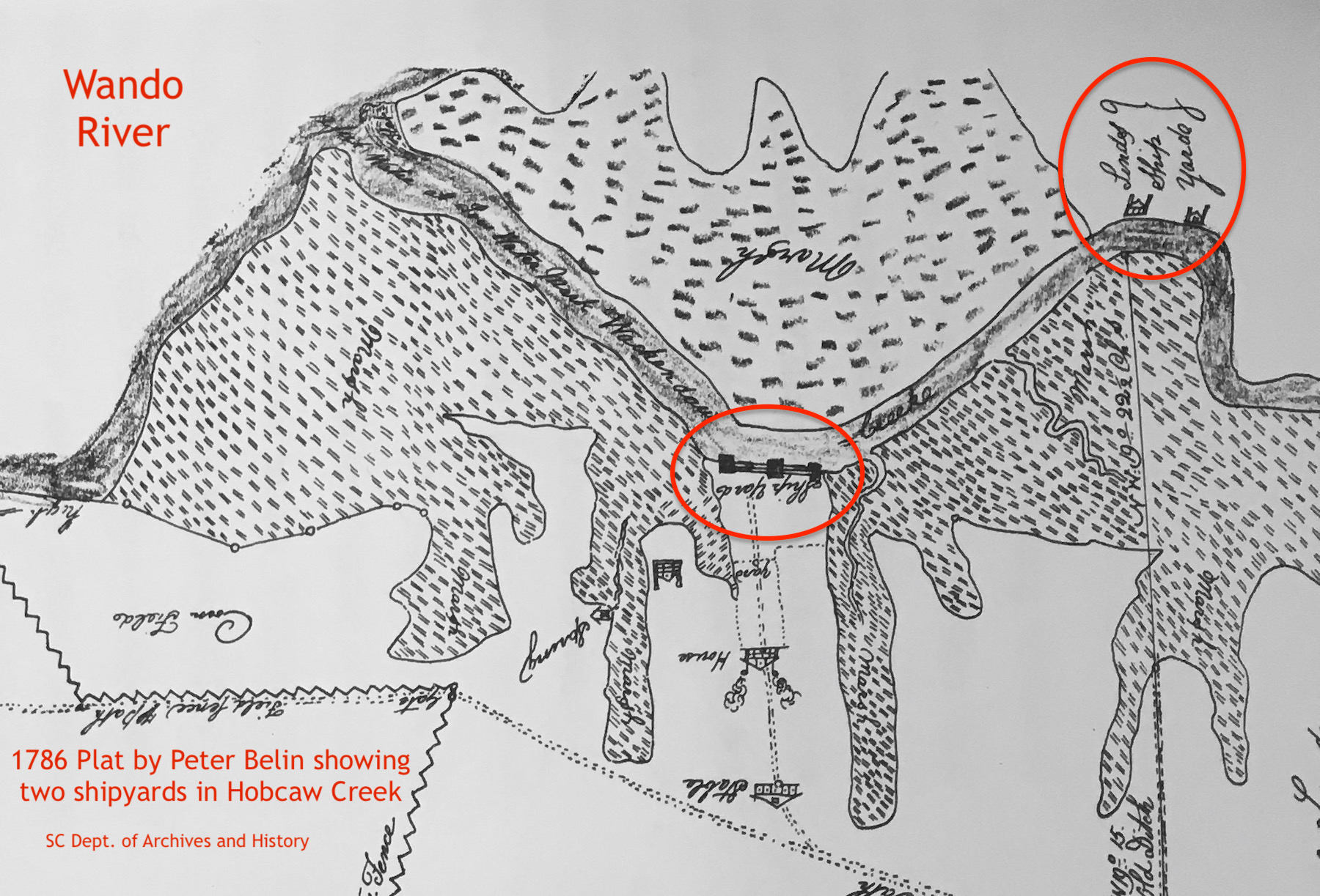 [20] For more information about shipyards in Hobcaw Creek, see James D. Scurry, Mark J. Brooks, “An Intensive Archaeological Survey of the South Carolina State Ports Authority’s Belleview Plantation, Charleston, South Carolina,” South Carolina Institute of Archaeology and Anthropology, Research Manuscript Series, 158 (1980); Lynn Harris, “Shipyards and European Shipbuilders in South Carolina (Late 1600s to 1800),” South Carolina Institute of Archaeology and Anthropology, Occasional Maritime Research Papers, 1999; Suzannah Smith Miles, “A Tale of Two Hobcaws,” Moultrie News, 21 September 2016.