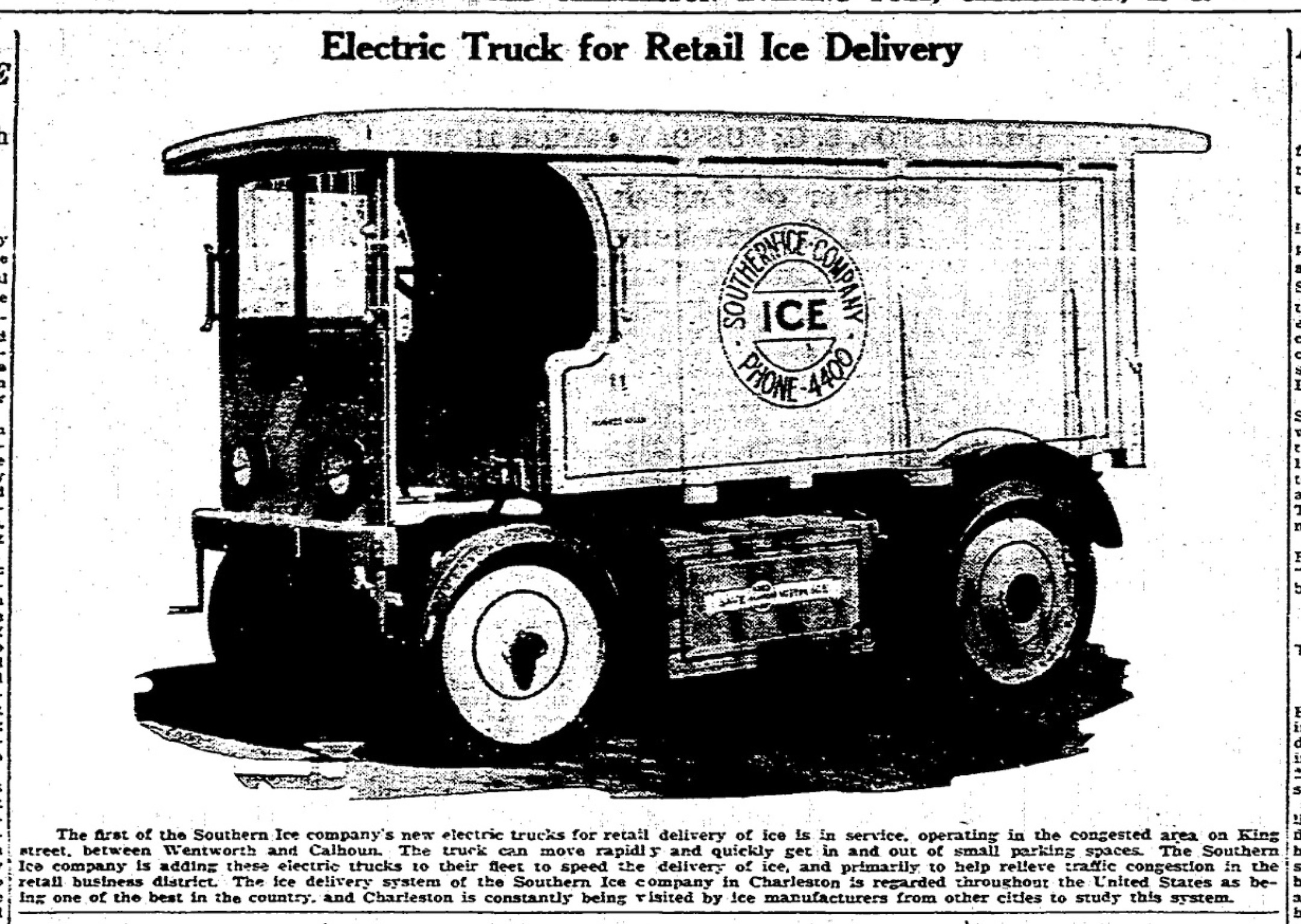 Southern Ice Company Electric Ice Truck - 1930 Evening Post.