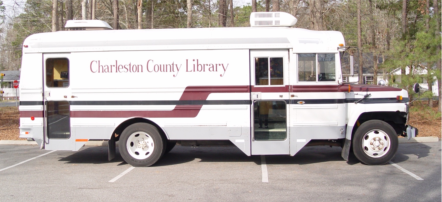 As the library’s older bookmobile became increasingly unreliable in the early 1980s, the county administration began to focus on providing more service through a single vehicle. An enhanced and larger bookmobile was ordered in the spring of 1985, but, due to contractual complications, did not arrive until the end of 1987. Many Charlestonians probably remember that long, gray, Thomas-built vehicle festooned with maroon stripes and the slogan “Reach out and Read” along its rear, which plied along local highways until 2006.