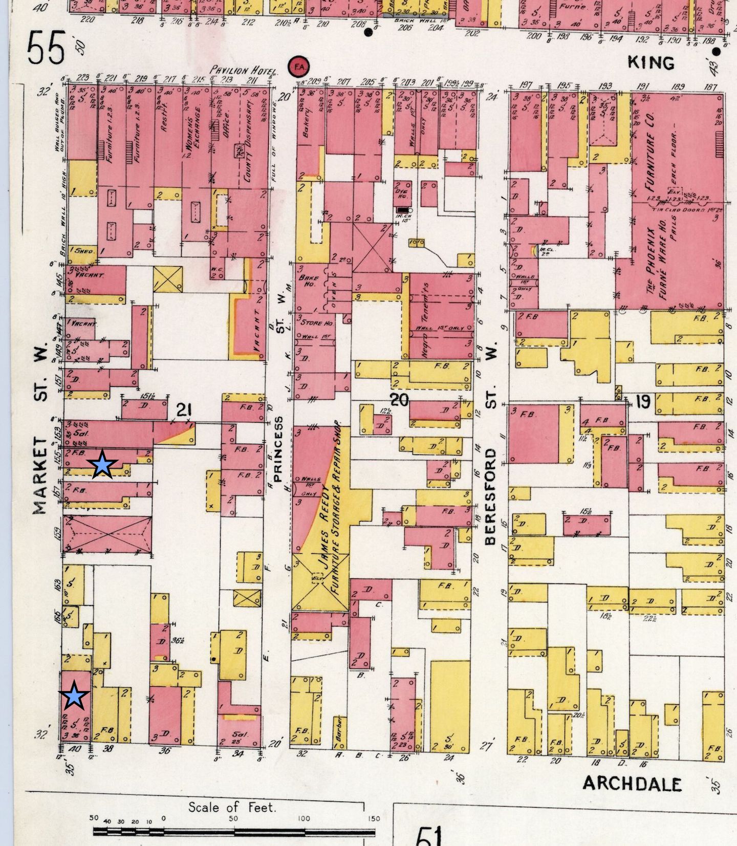 Commencing from the area around the intersection of King and Market Streets, the heart of the riotous crowd worked its way northward along King Street. Around midnight, sailors saw a black youth duck into a store at 305 King Street, Fridie’s Central Shaving Parlor, a barber shop “run by negroes for white men.” The crowd went after him, but the door was locked and the lights were out. Fueled by rage, the mob of sailors smashed through the windows and destroyed the shop’s interior. They searched through the rubble but, finding no prey, moved on. A young man named Augustus Bonaparte later testified to the Navy’s investigation that he had hidden inside Fridie’s shaving parlor until it was quiet. Once he stepped out into King Street, however, he was attacked and beaten by sailors while a policeman stood by and watched.[14]