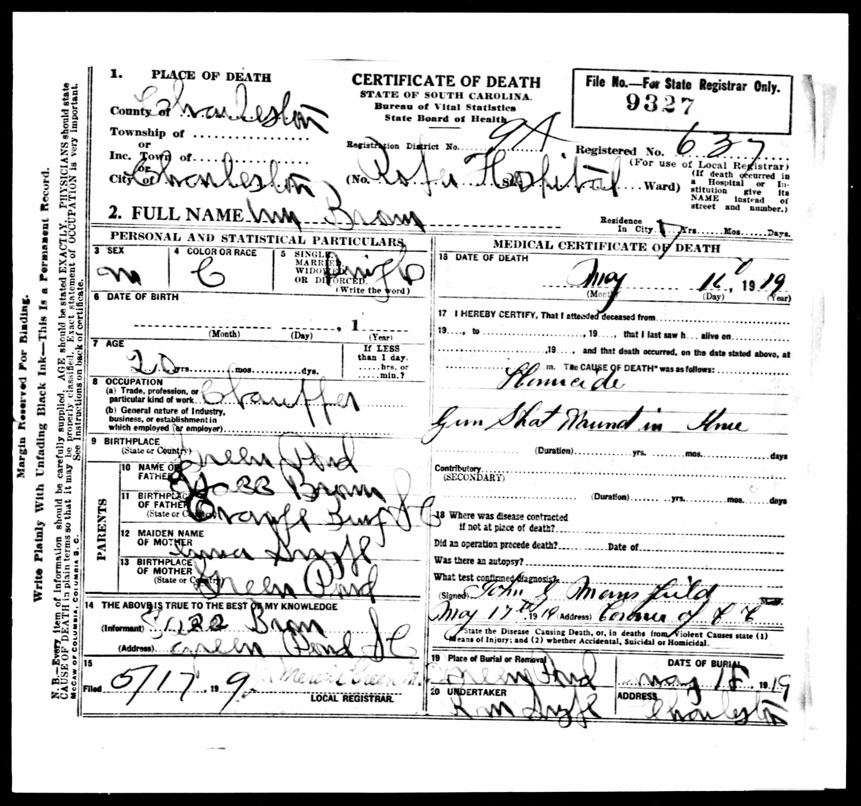 [12] Charleston Evening Post, 12 May 1919, page 9; Charleston News and Courier, 12 May 1919, page 8.