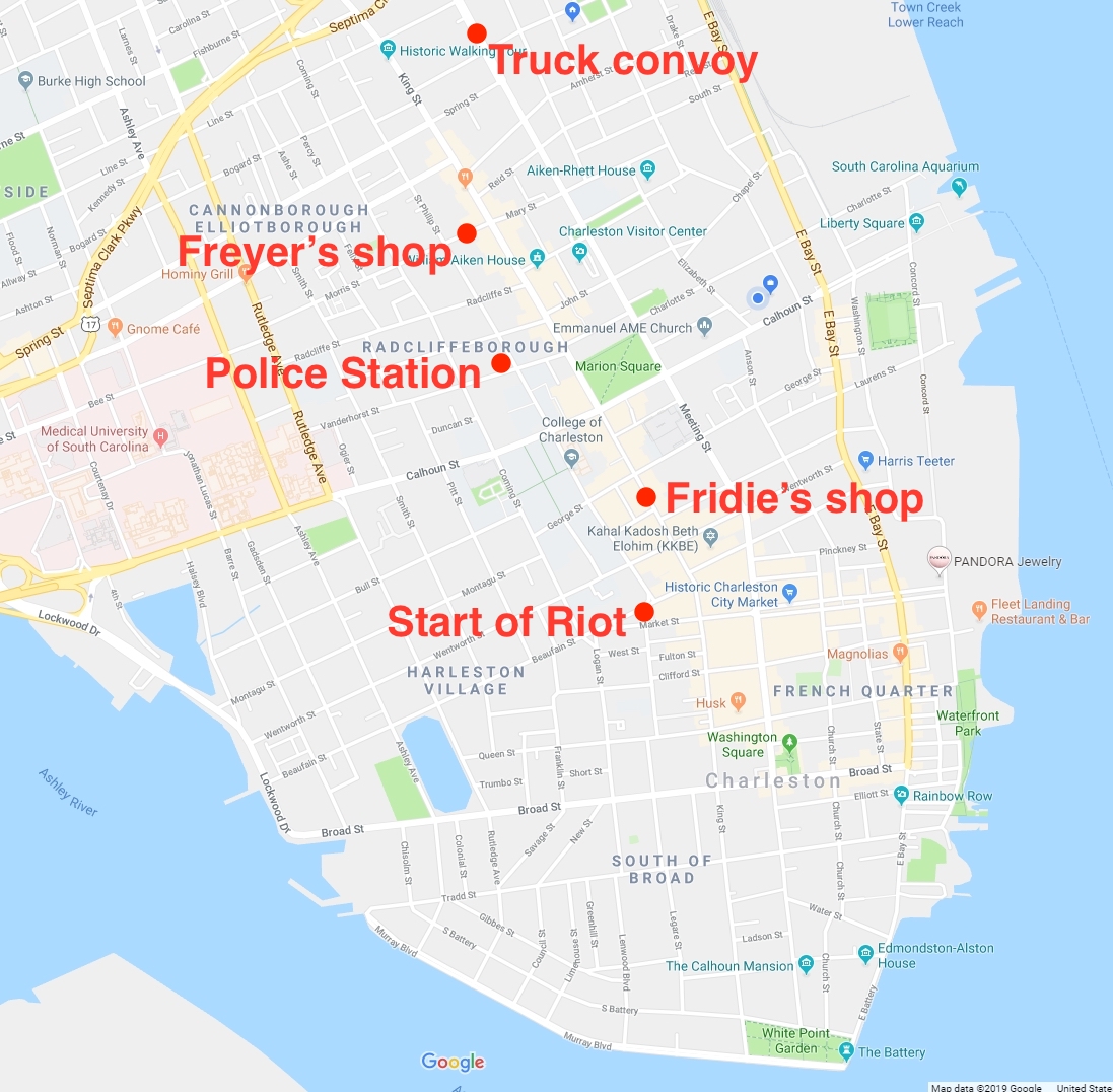 Adding to the factual confusion present in the contemporary newspaper reports, authors less familiar with Charleston have misidentified some of the local characters and misinterpreted some of the geography and chronology of the events in question. I hope to correct some of those errors, but, in the interest of time, I’m going to omit a few details from my summary. My goal is to lay out the known facts in a logical fashion in order to facilitate a better understanding of this important local tragedy.