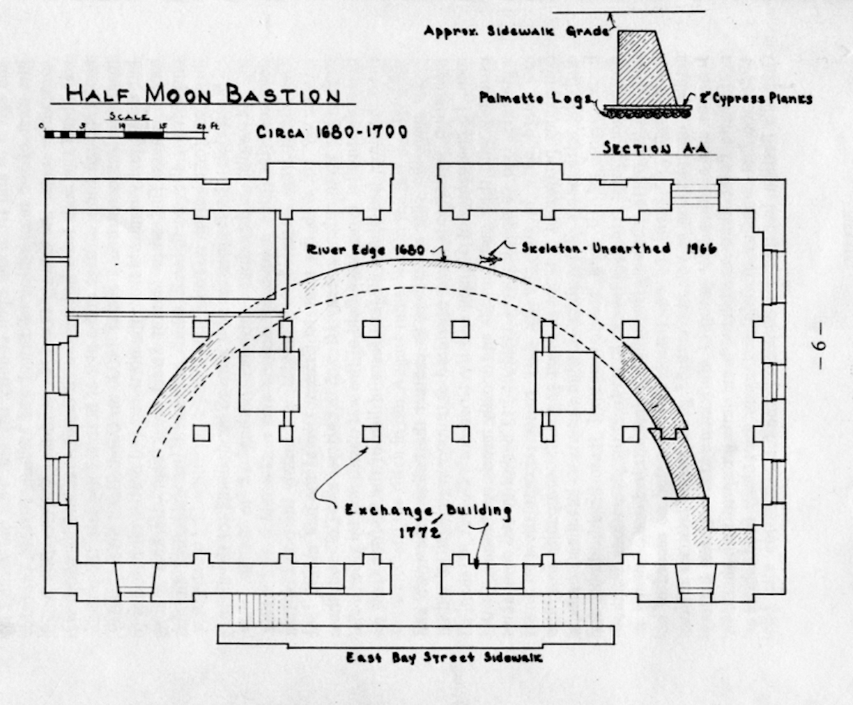 [23] See the plan illustrations of the Half-Moon in Samuel Lapham, Our Walled City (Charleston, S.C.: Society of Colonial Wars in the State of South Carolina, 1970), and Herold, Archaeological Research.