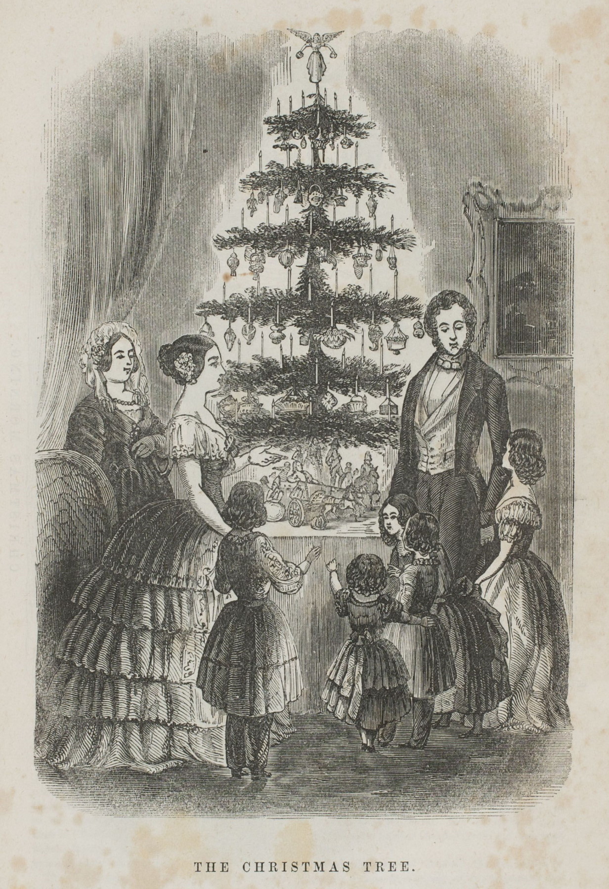 The Christmas tree is a ubiquitous holiday symbol throughout our community and very nearly around the world, but it’s important to remember that it hasn’t always been so. The tradition of erecting an evergreen tree indoors during the Christmas season, decorating it with lights and baubles, and placing gifts on or under its branches, was not a tradition in the English-speaking world until the middle of the nineteenth century. The Christmas tree is associated mostly with German-speaking Christians of central Europe. German Palatines (from what is now the southwest corner of Germany; see Episode No. 15) began arriving in Charleston in the 1730s, and in the 1750s formed the first Lutheran Church in South Carolina—St. John’s Church, in Archdale Street. Some of those early German immigrants or their descendants might have erected an evergreen Christmas tree—or tannenbaum—in their modest homes, but the practice was certainly not widespread.