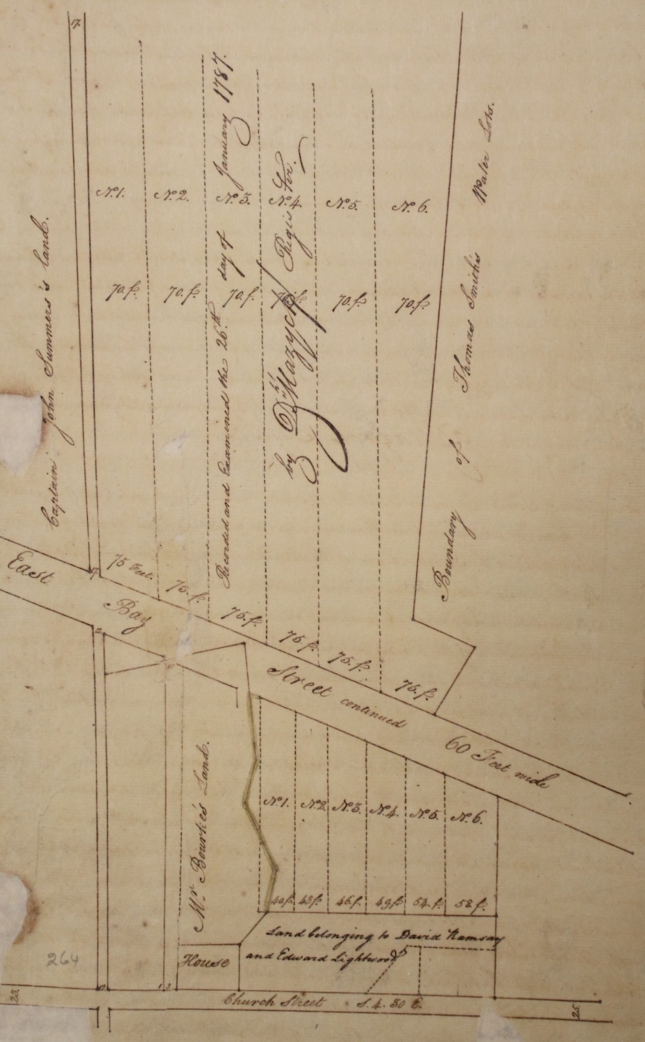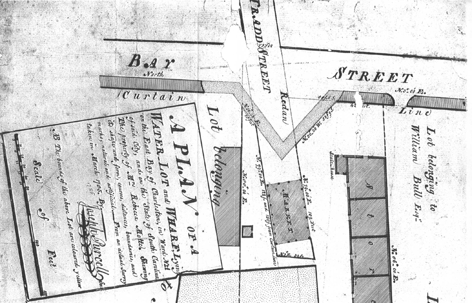 The United States Congress ratified the definitive treaty of peace with Britain in mid-January 1784, and news of this event reached Charleston by the end of the month. Almost immediately, on February 6th, the state House of Representatives approved a report from the Committee on Ways and Means recommending that a bill be drafted appointing commissioners to ascertain the boundaries of “the several forts, fortifications, and low water lotts [sic] belonging to the public within the city of Charleston,” who would be authorized “to dispose of the same at public auction.”[9] After several weeks of debate and modification, that bill, called “An Ordinance for the Sale of the Public Lands Whereon the Forts and Fortifications Were Erected, and Low-Water Lots within the City of Charleston, and The State Ship-Yard at Hobcaw, and the Island of Pollawahnas, in St. Helena Parish,” was ratified on 26 March 1784.