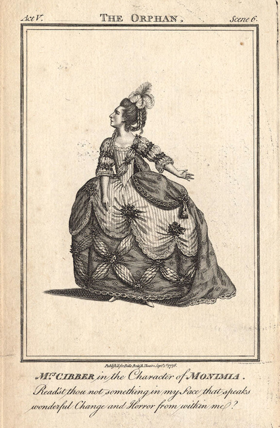 The first advertisement for a theatrical production in Charleston appeared in the South Carolina Gazette on 18 January 1734/5, announcing that “on Friday the 24th inst[ant]. in the Court-room will be attempted a TRAGEDY, called The Orphan, or The Unhappy Mariage [sic].”[9] Thomas Otway’s five-act, neo-Classical tragedy in blank verse, The Orphan, was first produced in London in 1680 and was still popular a half-century later. Its cast features ten characters, including three women and one page boy—a role frequently performed by a young lady in England. The story, set in the distant land of Bohemia, concerns the intrigues of a domestic love triangle, in which all three of the principal characters die in the climactic final scene. Dialogue rather than action dominates the play, which includes six scenes that transpire in three contrasting sets—a garden, a “saloon,” and a “chamber.”[10]