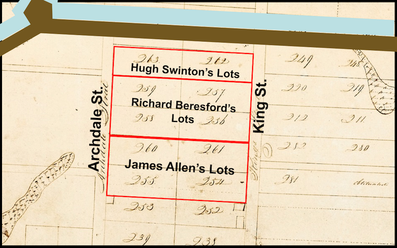 As I mentioned a moment ago, at the time of George Hunter’s resurveying and the fortification construction in the mid-1740s, the northwest part of urban Charleston was, in fact, pretty rural looking. King Street certainly existed because it was the only road in and out of the town, but Archdale Street and other streets in that neighborhood existed only on paper. In the wake of George Hunter resurveying, however, the streets and lots were laid out anew, and were ready for development. We’re talking about a couple of dozen acres that were owned by a handful of investors.
