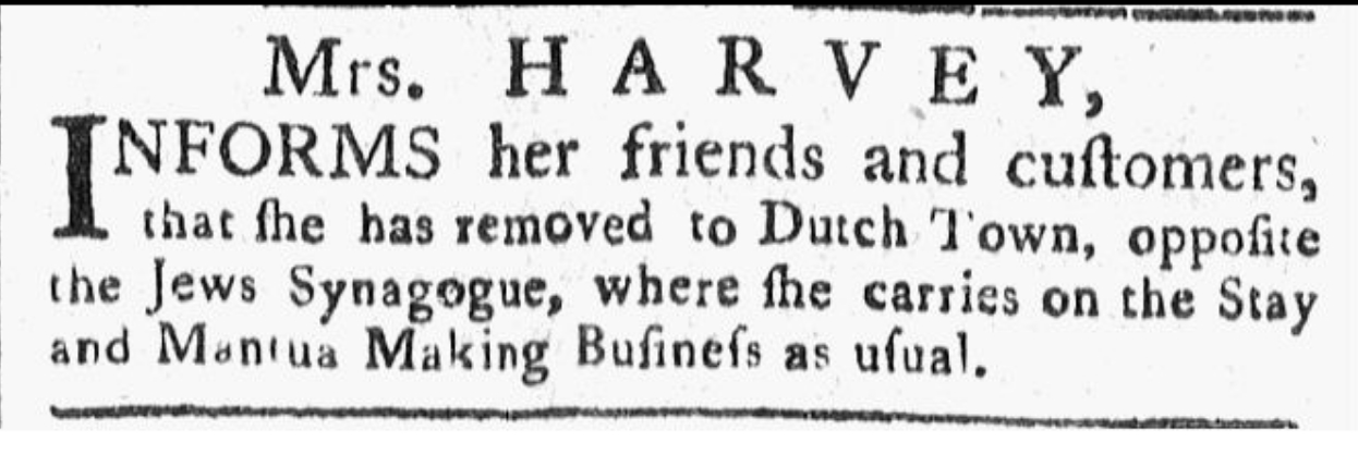 As the eighteenth century drew to a close, Dutch Town became less Deutsche, but it continued to be a modest working-class neighborhood inhabited by people on the lower end of the socio-economic ladder. In the South Carolina Weekly Gazette of 16 August 1783, for example, one Mrs. Harvey advertised that she had removed her sewing business “to Dutch town opposite the Jews Synagogue.”