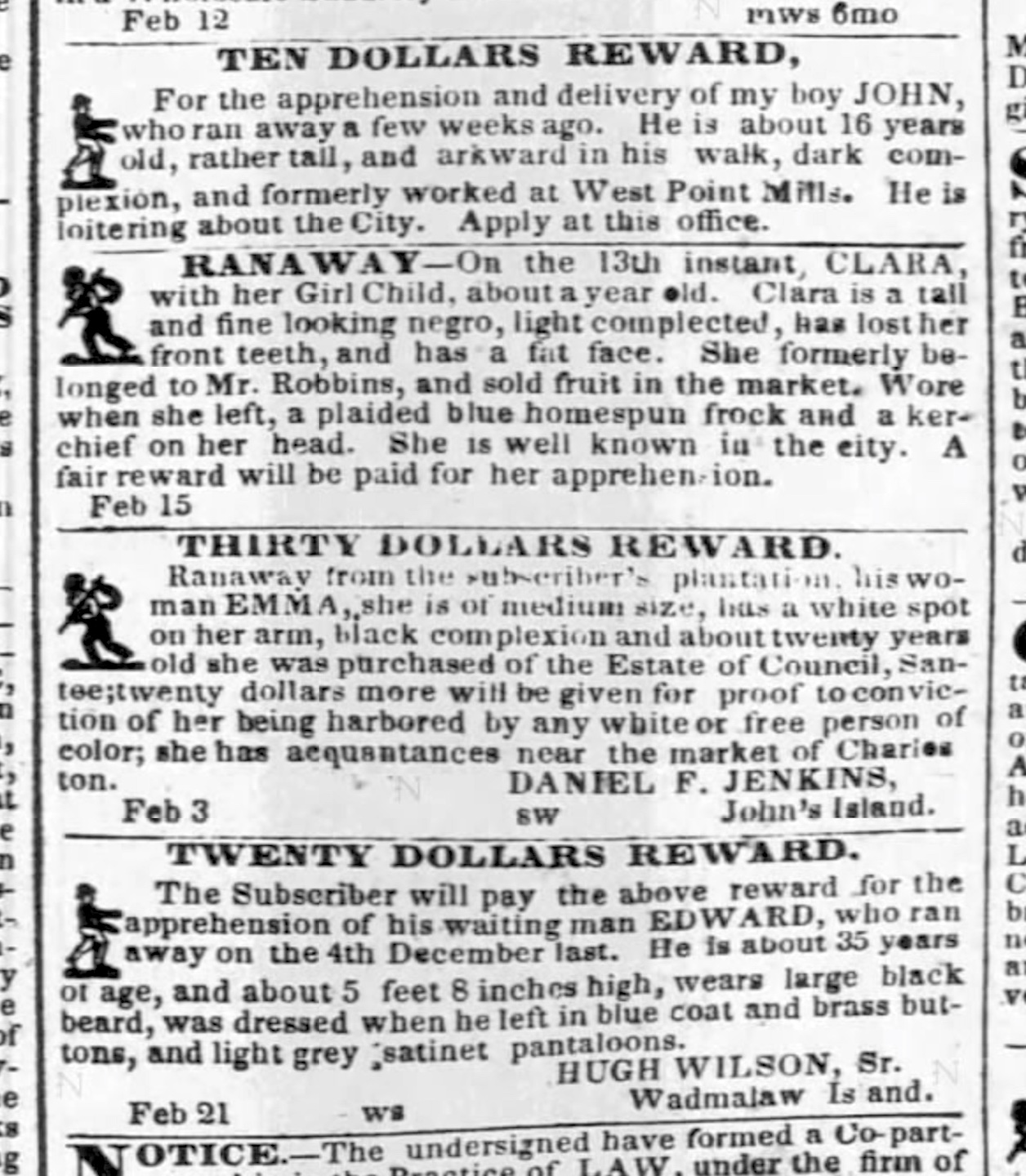 I believe these miniature stories of enslaved runaways could serve as a valuable trove of educational material for students of all ages. By reading the brief accounts and unpacking the contextual details, we recognize the humanity and agency of thousands of forgotten people who once inhabited our community. At the end of this essay, I've included a list of suggested books for further reading. You can also learn more about this topic by visiting the South Carolina History Room at the Main Library to troll through historic newspapers on microfilm. Alternatively, you can use your CCPL library card to access an online database of digitized newspapers and browse through thousands of runaway advertisements from your own home or classroom.
