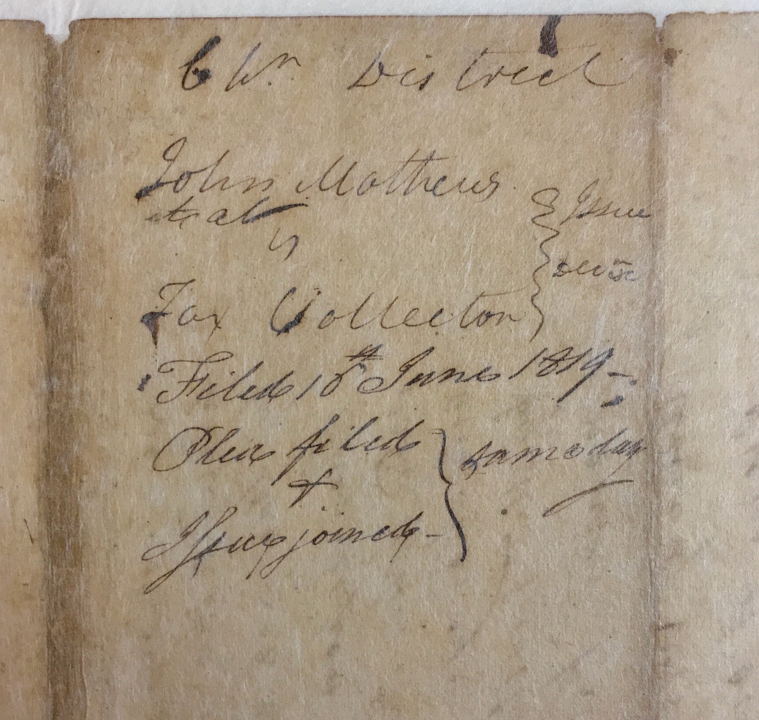 Armed with sworn testimony of their Indian ancestry, John Mathews returned to the tax collector’s office and presented copies of Mrs. Taggart’s affidavits to Samuel Burger. The youth demanded the dollar that he had wagered, but Burger rebuffed the claim. The collector either refused to credit the memory of old Mrs. Taggart, or opined that the ancestry of the Mathews brothers and Brown sisters did not alter their liability to the state capitation tax. John departed without his one dollar prize, and Burger recorded the six protestors as tax defaulters. In July 1818, Burger submitted their names to the Sheriff of Charleston District as defaulters subject to pay a penal double tax. At some point in the subsequent months, the sheriff’s office prepared writs of execution to seize the property of all defaulters commensurate with the value of their respective unpaid taxes.[20]