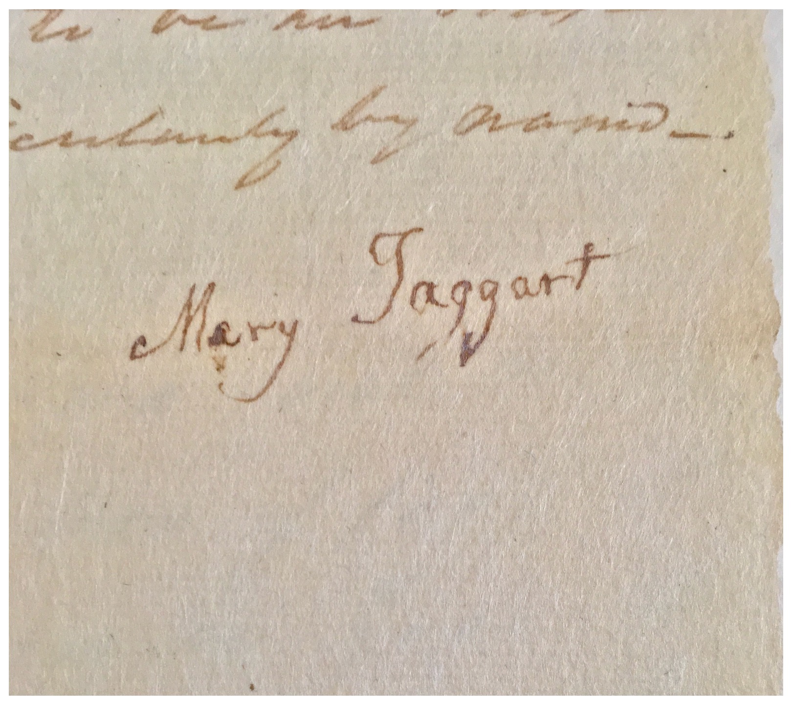 Hunt first asked if Mrs. Taggart if she knew of two women named Betty and Patty and of their status. Mary replied, “I knew Patty & her sister Betty before the Revolutionary War, they were free Indian women, & were in amity with this state.” Second, Hunt asked if Mary knew his clients to be the descendants of these free Indian women. Mary replied, “I know that Nancy Brown is daughter of Betty, & Mary Mathews [is the] daughter of Patty. That Hannah Brown & Betsey Mushington [are] daughters of the said Nancy Brown. That Mary Mathews had a great many sons, & believe these young men to be her sons. I do not know them particularly by name.” Having no further information to relay, Mrs. Taggart then scrawled her signature with a feeble hand across the paper containing a transcription of her answers.