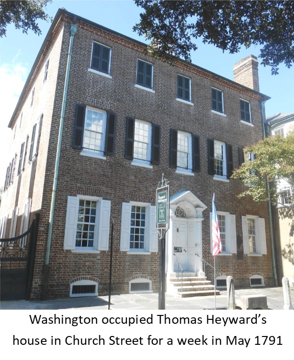 President Washington rested at Thomas Heyward’s house in Church Street, during the first part of the day, and then received a number of guests. “At three o’clock in the afternoon the Intendant and Wardens of this city, attended by their proper officers, waited upon the president, at his house.” The intendant, made a brief public address to the president, and Washington made a brief, cordial reply. “At half past three o’clock, the merchants [of Charleston] went in a body” to visit the president. Edward Darrell, on behalf of the city’s mercantile community, made a brief address to the president, and Washington made a brief, cordial reply.