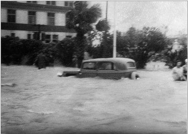The same can also be said for the Category 1 hurricane of August 11th 1940, which completely flooded White Point Garden and all the riverfront streets of Charleston. The hurricane of 1940 has no name, but a few years later, in the mid-1940s, the National Weather Service began using personal names to identify hurricanes, in an effort to facilitate discussion and comparison of historical storms. In 1951 the United States government adopted a new radiotelephony spelling alphabet, using a word to represent the letters of the alphabet for radio transmission (Able, Baker, Charlie, etc.). In that same year, the national weather service started using that same radiotelephony spelling alphabet to name the annual succession of tropical cyclones. Two years later, in 1953, however, the United States adopted a revised international radiotelephony spelling alphabet—the one that begins with the words Alpha, Bravo, Charlie, Delta, Echo, etc. Following this change in nomenclature, our National Weather Service began using female names, in alphabetical order, for hurricanes.