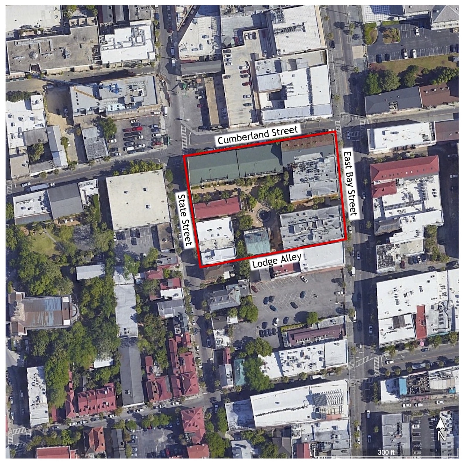 During the early days of 1973, the Atlanta-based Baier Corporation conceived a plan to redevelop a block of approximately 1.5 acres in urban Charleston, bounded by East Bay, Cumberland, and State Streets, including all of the buildings on the north side of Lodge Alley and buildings standing at the southeast end of the alley. The bulk of the structures encompassed with this block were then empty warehouses, constructed in the late nineteenth century as storage for the wholesale trade in vegetables and liquor. Wholesale commerce had dominated this part of East Bay Street during the second half of the nineteenth century and the first half of the twentieth century, but the industry moved out of the downtown area in the 1950s and 1960s to larger facilities further north up the Cooper River waterfront. On the aforementioned downtown block, the Baier Corporation planned to raze most of the vacant stores and warehouses and erect a mid-rise tower containing sixty to seventy luxury condominiums distributed across seven or eight stories measuring approximately eighty-nine feet tall (roughly the same height as the Mills House Hotel at the southwest corner of Meeting and Queen Streets). The redevelopment plan also included a row of two-story retail storefronts along East Bay and State Streets, and a twelve-foot high brick wall along Cumberland Street and parts of Lodge Alley.