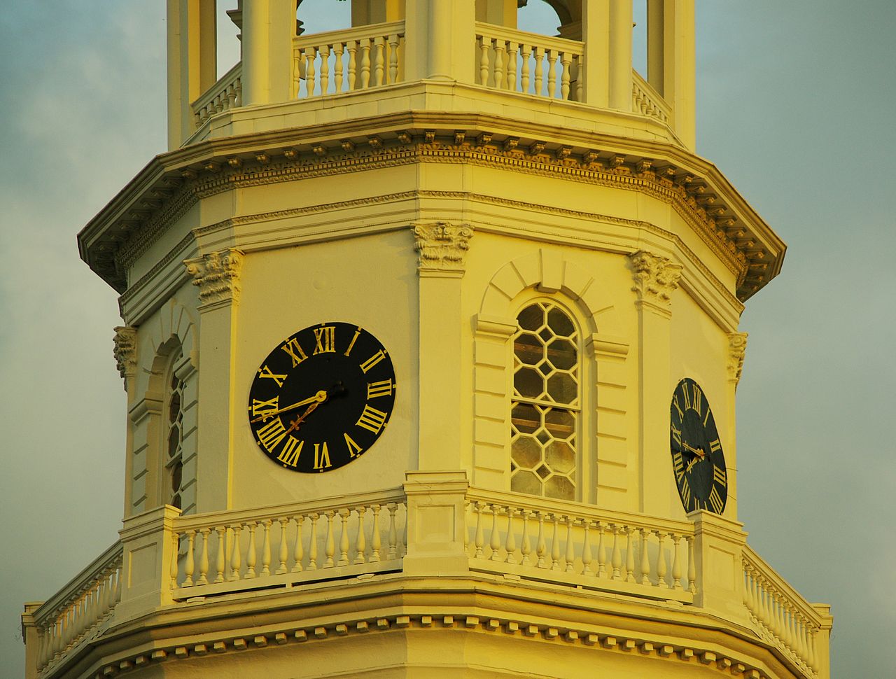 Even after the arrival of our first public clock in the late 1720s, keeping track of the hour of the day in colonial-era Charleston continued to be a vague business. Most people’s lives simply revolved around the rising and the setting of the sun. Unless you had an expensive watch or clock, or even a sundial, calculating the hours between sunrise and sunset was a matter of guess work. As a result of these conditions, people’s lives did not revolve around schedules and deadlines. The concept of being late or early was far more elastic than it is today. The notion of “clock time” was a mathematical construct, not a rule that framed your life. This situation began to change in the mid-1760s, however, when an expensive, English-made clock was installed in the steeple of St. Michael’s Church at the corner of Meeting and Broad Streets.