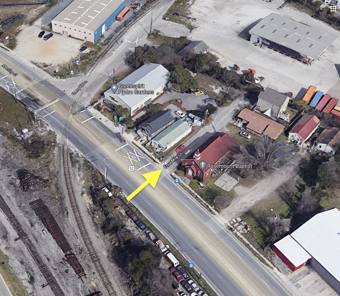 Finally, the woman who helped bury Elizabeth Jackson in 1781 recalled that the grave was located “about one mile from” the Governor’s Gate. Although she did not specify the direction from the gate in question, logic dictates that she meant one mile further along the sole highway leading northward up Charleston Neck. One mile north of the three-mile stone leads, of course, to the site of the four-mile stone. During much of the eighteenth and nineteenth centuries, a roadside tavern known as the Four Mile House stood here, adjacent to a broad bend in the old roadway, offering refreshment for weary travelers. The tavern is long gone now, but the four-mile stone is now in the museum of the South Carolina Historical Society. On the site of what was once a bucolic landscape of suburban Charleston but is now a sparse industrial zone, one can still find a short stub of a street called Four Mile Lane on the east side of Meeting Street Road (click here to see a map). Somewhere in this vicinity we might find the final resting place of Elizabeth Jackson.[13]