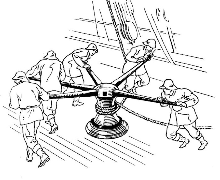 Late on the evening of June 15th, the southbound schooner was alone at sea under the expansive canopy of heavenly stars.[7] Ratto, Diancona, Blanchard, and Vaughan were still awake, but noted that Lortia was snoozing amidship and the two Canarios were sprawled out asleep at their customary stations—one at the forecastle at the bow and the other on the stern quarterdeck.[8] Quietly the four confederates chose their weapons and divided into pairs. Joseph Ratto carrying the carpenter’s axe joined with Pierre Blanchard, who likely carried the wooden pump handle that the Canarios had used to murder the Cuban captain and first mate weeks earlier. William Vaughan chose the carpenter’s hammer while Joseph Diancona carried a stout wooden shaft called a handspike, one of several used to rotate the vessel’s capstan. Their later testimony provided no stage directions, but we might imagine that the first pair crept towards the bow while the others stealthily ascended the quarterdeck at the stern.