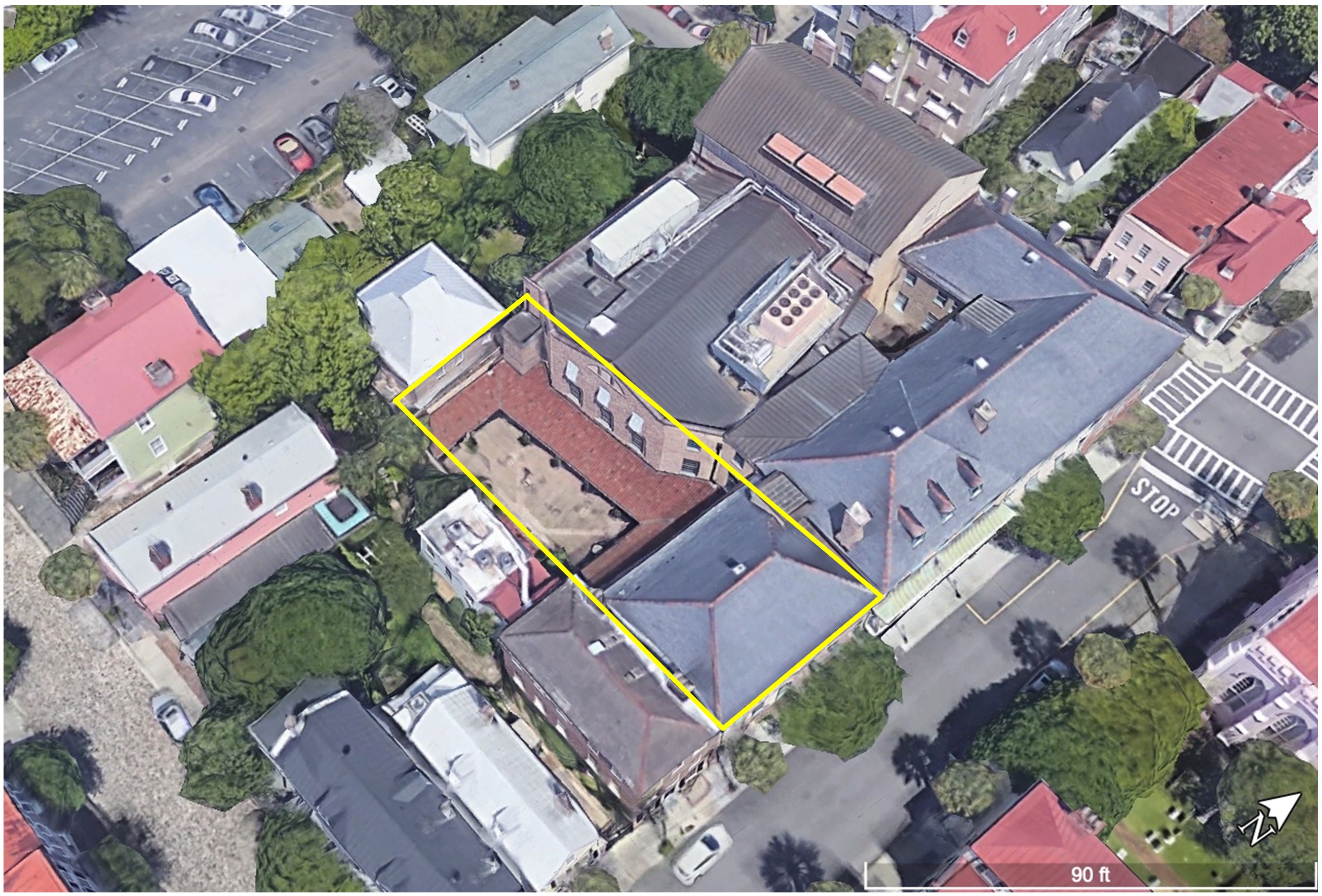 The next time you’re strolling down Church Street, I encourage you to look for the ornamental iron gate to the left of the Box Office of the Dock Street Theatre. Step through the shaded passage and enter Judge Trott’s yard, now called the Paolozzi Courtyard. Straight ahead, in the distant corner of this tranquil space, you’ll see the elevator tower that marks the site of the colonial-era privy in the northwest corner of Trott’s back garden. Close your eyes, and listen for the distant echo of chickens clucking.