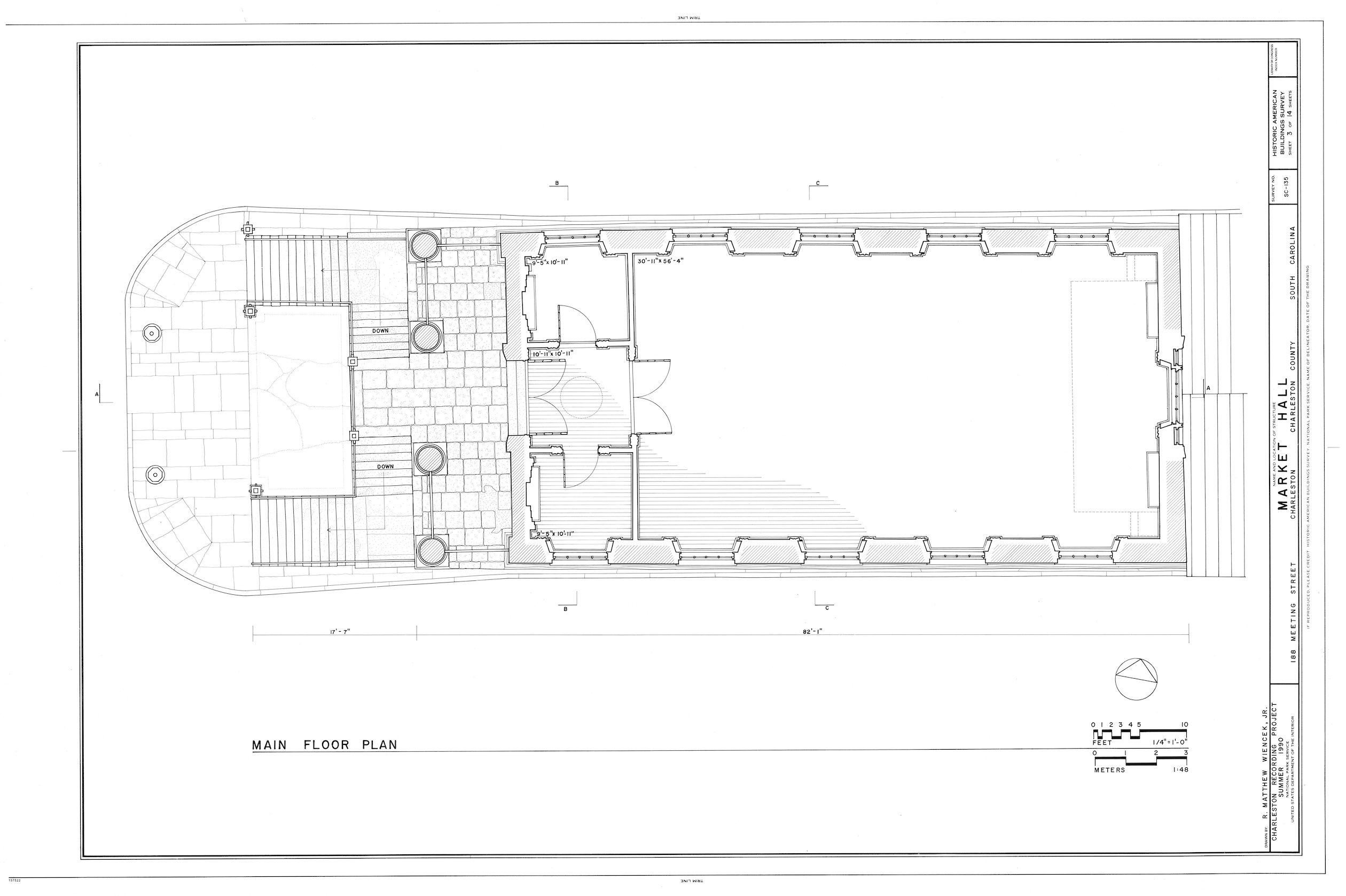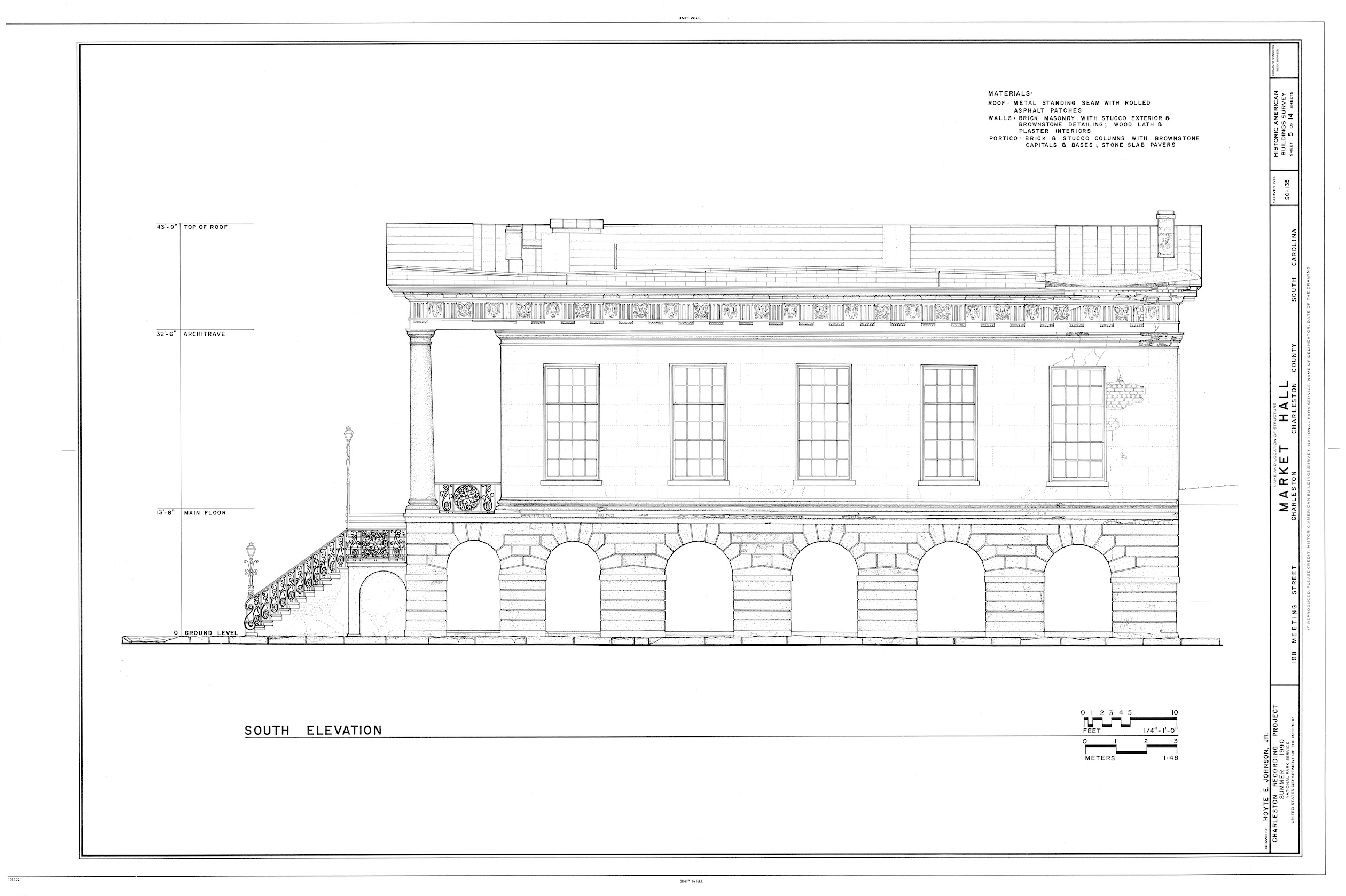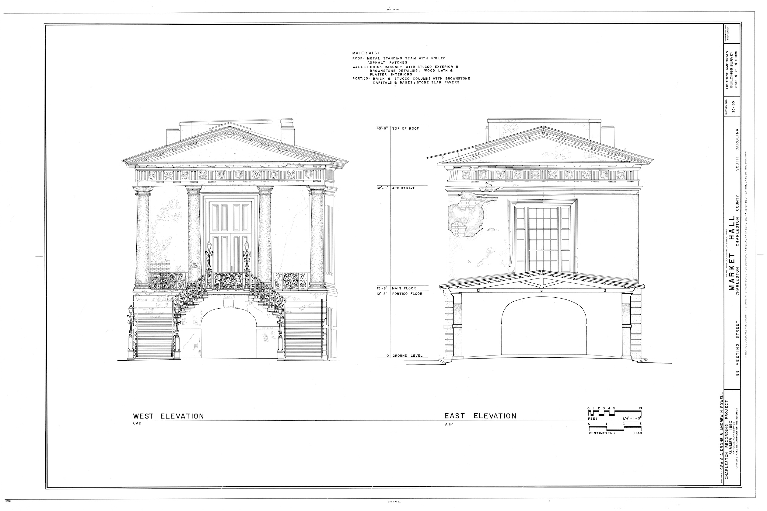[22] Evening Post, 28 September 1989, page 9, “Confederate Relics Wet From Storm,” by Kerri Morgan; Evening Post, 28 September 1989, page 10, editorial, “Confederate Relics Need Aid From Ruin”; Measured drawings of Market Hall prepared by the Historic American Building Survey (HABS) in 1990 can be found on the website of the Library of Congress.