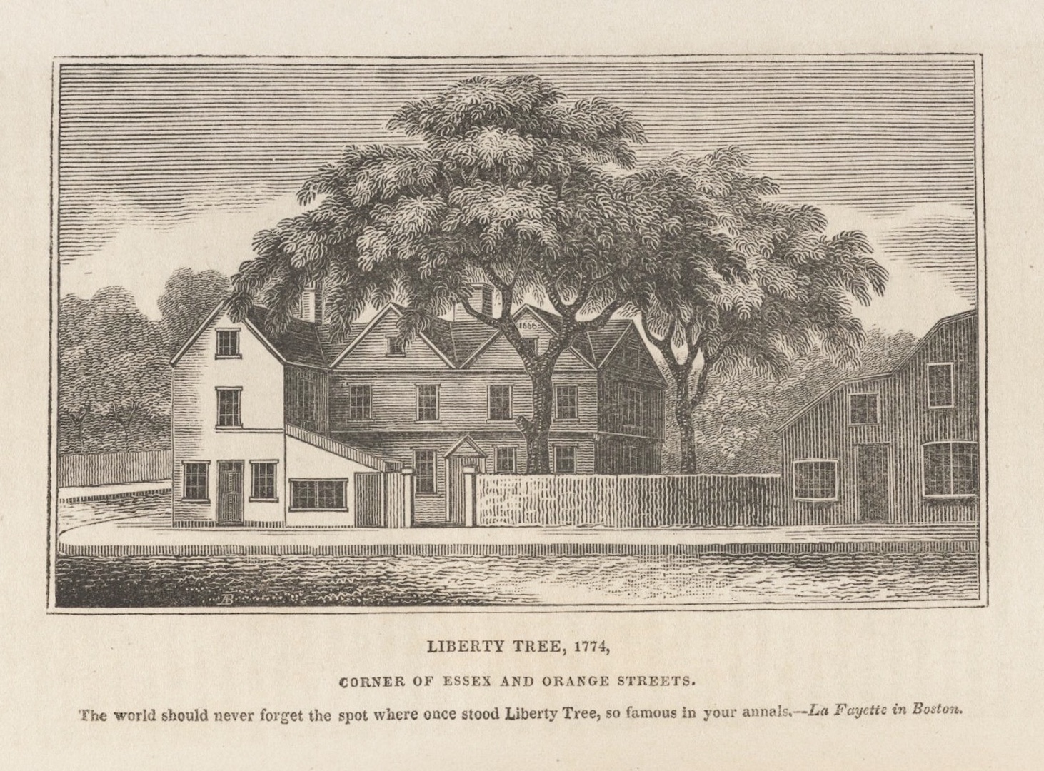 [2] For more information about the genesis of the Boston Liberty Tree, see Arthur M. Schlesinger, “Liberty Tree: A Genealogy,” The New England Quarterly 25 (December 1952): 437; Vaughn Scribner, “‘They will begin to think their united power irresistible’: The Stamp Act and the Crisis of Civil Society,” Inn Civility: Urban Taverns and Early American Civil Society (2019): 122–23.