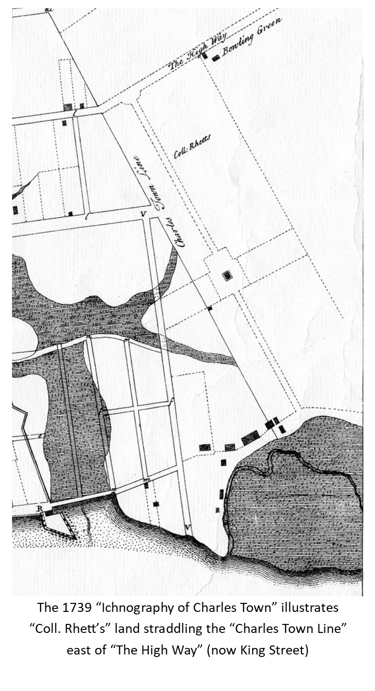 William and Sarah Rhett called this suburban plantation Rhettsbury, or Rhett’s Point. They held the land as a “joint tenancy,” so the passing of Colonel Rhett in early 1723 left his widow in full possession of the property. In the spring of 1728, Sarah Rhett married retired Chief Justice Nicholas Trott (1663–1740), and for some time after that date you’ll find references to the property as “Trott’s Point.” Prior to their marriage, however, Sarah Rhett and Nicholas Trott settled a pre-nuptial agreement that allowed Sarah to maintain full control over “Rhetts berry” (as she called it her in 1745 will). While still residing at her ca. 1712 mansion, Sarah Rhett Trott elected to devise that property to the future children of her youngest daughter, Mary Rhett (1714–1744).[4]