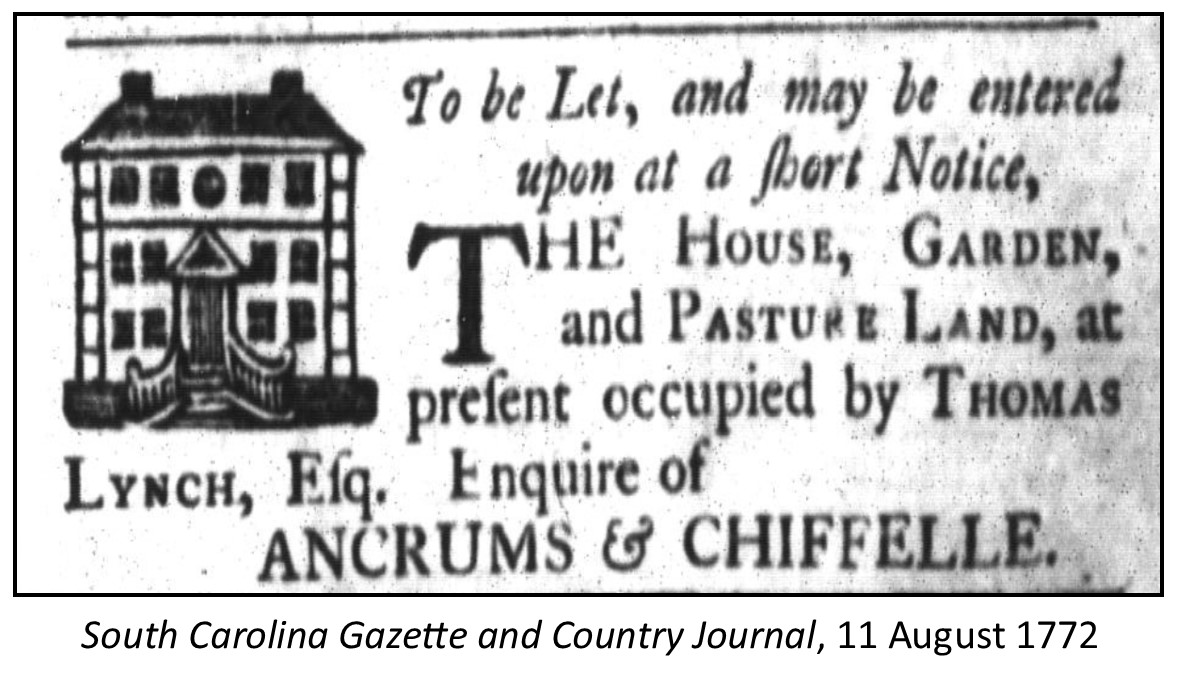 [8] For advertisements mentioned Lynch’s presence, see, for example, SCG, 28 April 1757 (supplement); SCG, 11–18 May 1765; South Carolina Gazette and Country Journal, 14 October 1766; SCG, 5 May 1767.