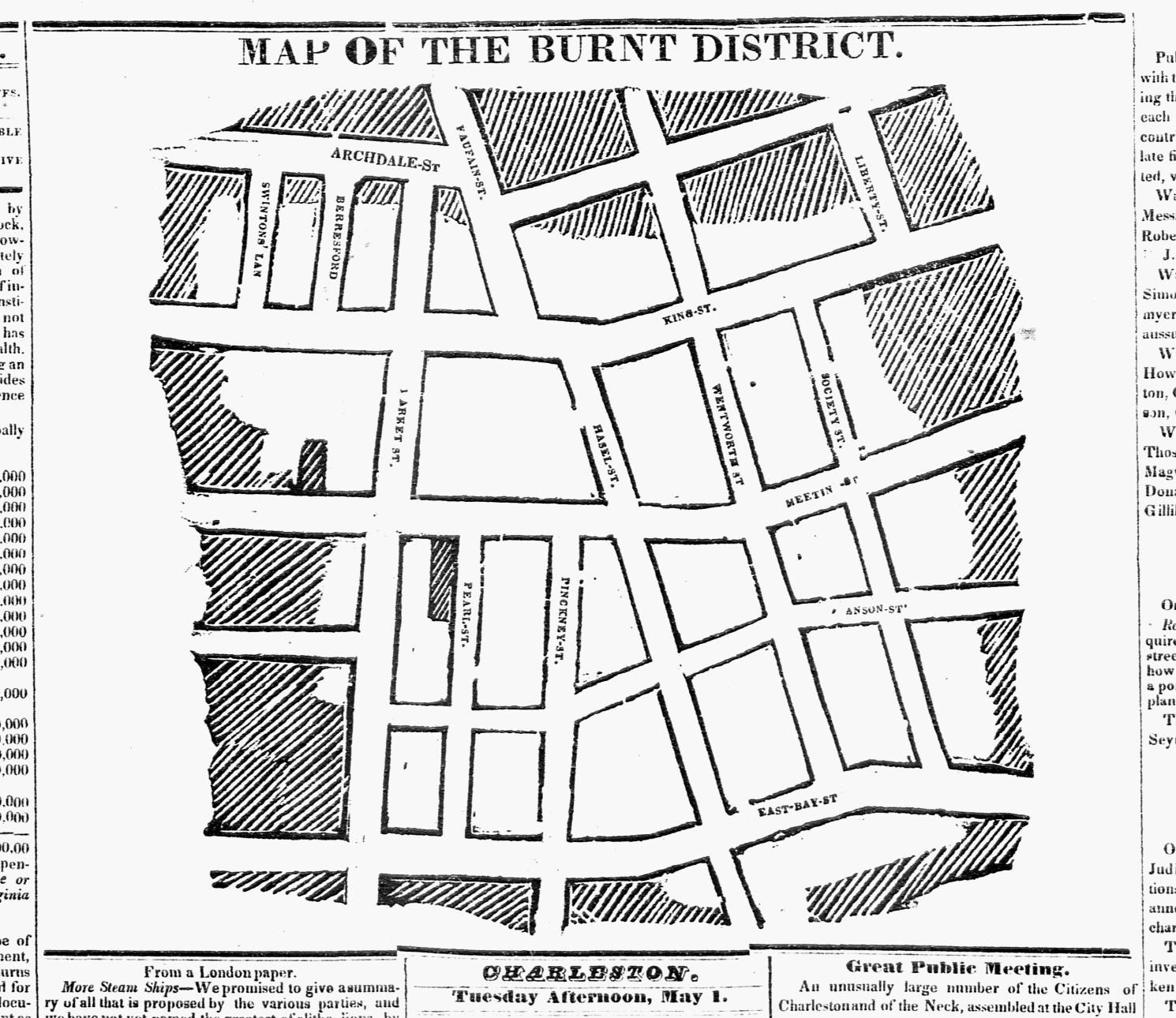 [13] For details of property damaged in the fire of 27 April 1838, see the Charleston Mercury, Courier, and Southern Patriot, issues of 28, 29, and 30 April 1838, and 1 May 1838.