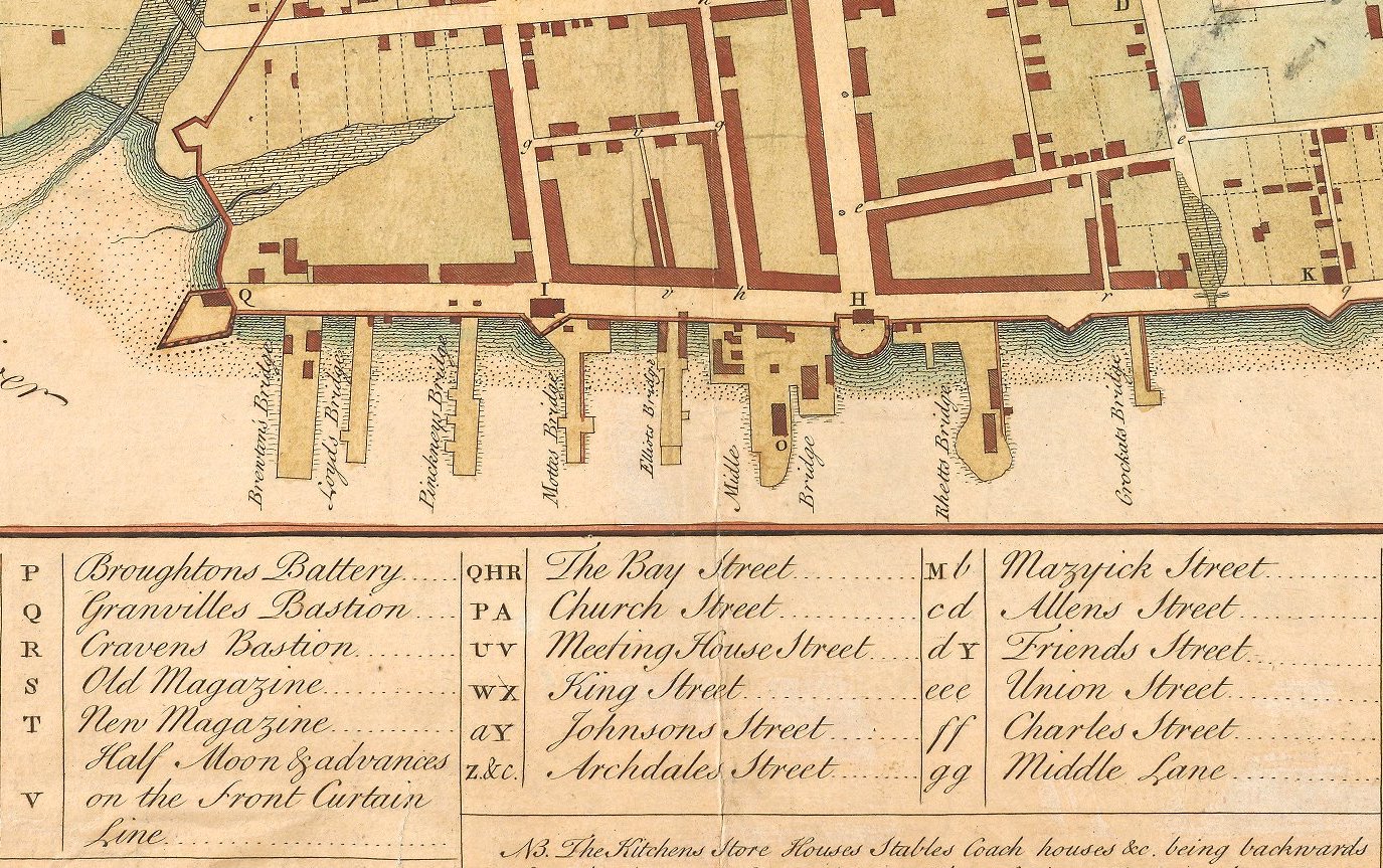 [3] South Carolina Gazette, 7 June 1770. The wharves mentioned, in south-north order, are Roper’s, Eveleigh’s, Raven’s, Graeme’s, Market, Motte’s, Elliott’s, Beale’s, Champneys’s, Beresford’s, Burn’s, Price’s, Wragg’s, Rose’s, and Russell’s.