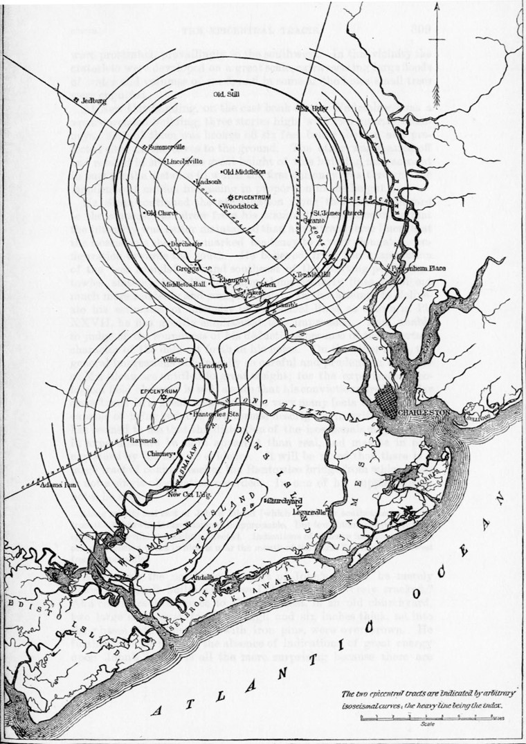Just as it seems like hurricane season is winding down, I know it must sound rather cruel to hear that there’s another potential natural disaster looming on the horizon. Nevertheless, the fact remains that Charleston and Berkeley Counties are home to several known earthquake faults, with a history of recorded activity since 1698. In late February of that year, the inhabitants of Charleston experienced a mighty shock, but of course there were no scientific instruments to record its strength. Another mild earthquake startled lowcountry residents in April of 1799, but there were few reports of any discernable damages. In the winter of 1811–1812, South Carolinians were rattled out of bed on several occasions by a series of quakes centered around the New Madid fault, 600 miles away on the banks of the Mississippi River. We didn’t experience any real damage here, but the tremors of December 1811 and January 1812 were sufficiently potent to make folks in the lowcountry wring their hands anxiously and avoid tall buildings for several months.