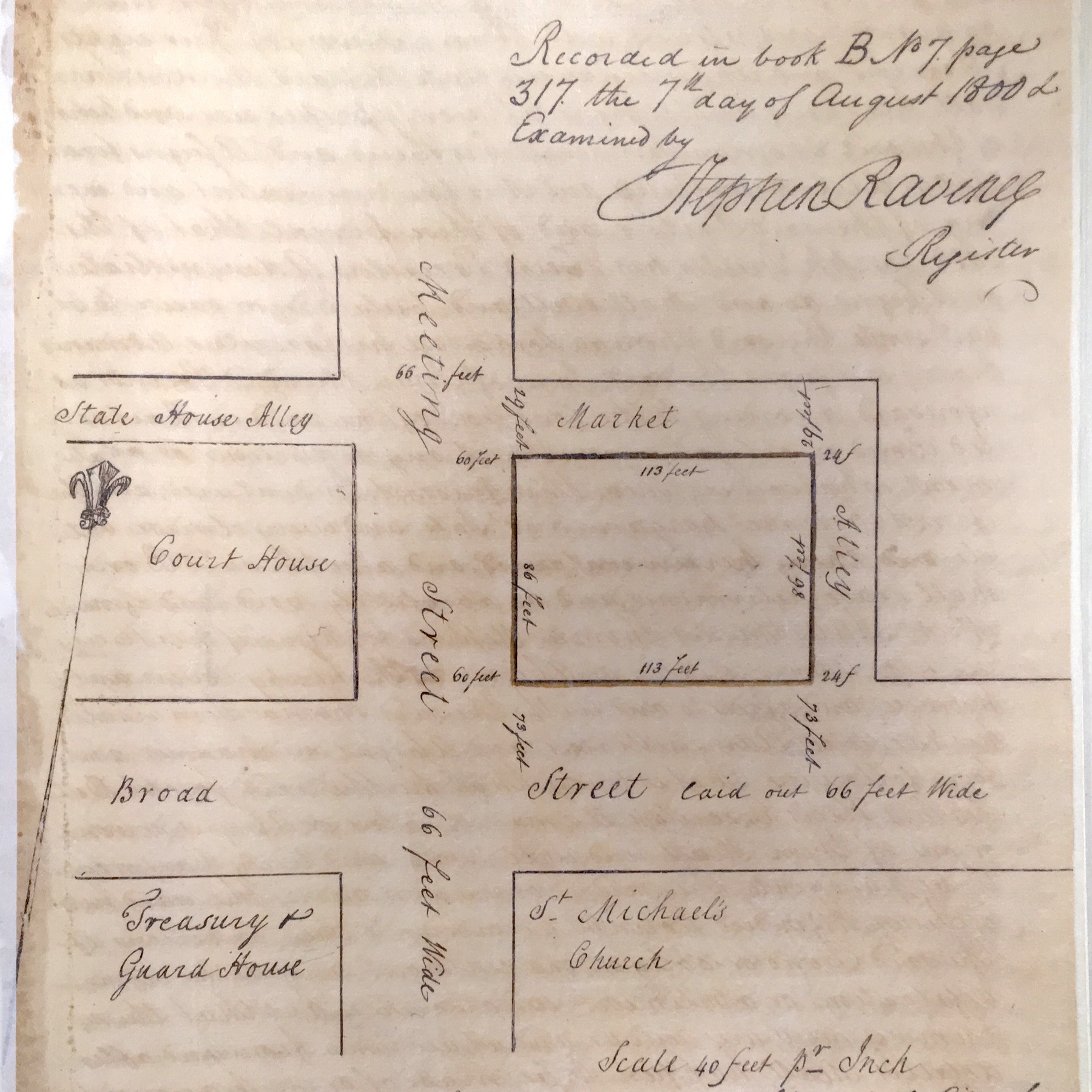 [33] City Council of Charleston to the President, Directors, and Company of the Bank of the United States, release in fee and plat, 19 June 1800, CCRD B7: 317–20.