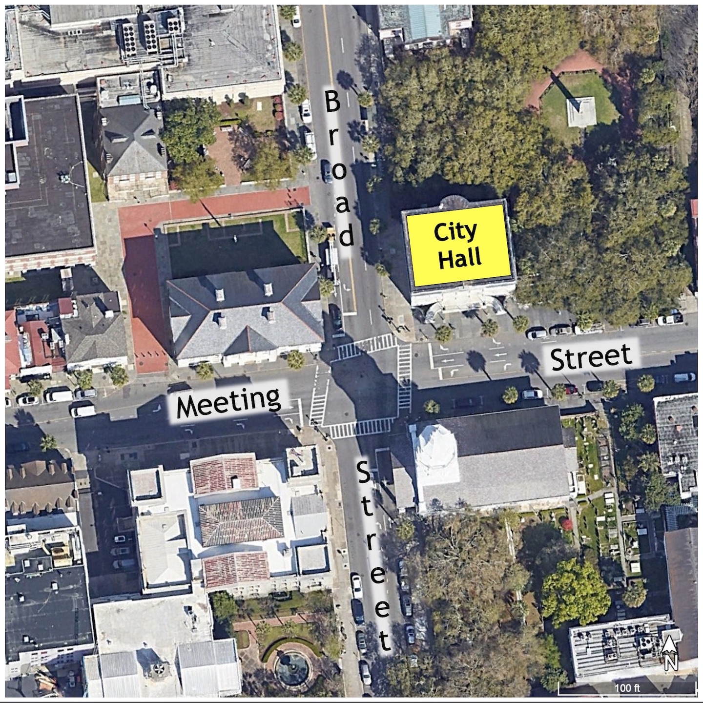 The site of Charleston’s City Hall forms the northeastern quadrant of Market Square, the central focus of the original plan or “Grand Model” of the town created ca. 1672 (see Episode No. 245). Although the early government of South Carolina reserved four lots at the intersection of Broad and Meeting Streets for public use, each measuring 120 feet by 134 feet, the northeastern quadrant remained vacant until the mid-1730s.[1] As I explained in Episode No. 254, the daily vending of meat, vegetables, and other comestibles in the earliest years of Charleston took place in the middle of Broad Street, slightly to the west of its intersection with East Bay Street. The town’s first market structure at the northeast quadrant of Market Square opened in the latter part of 1735, or perhaps the early days of 1736.[2] At that time, the remaining three quadrants were vacant. The first St. Philip’s Church, built at the southeast corner of Broad and Meeting Streets before 1700, was dismantled in the mid-1720s after the congregation moved to a new church at its present site on Church Street. The two quadrants on the west side of Meeting Street were obstructed by fortifications that were dismantled during the early 1730s (see Episode No 268).