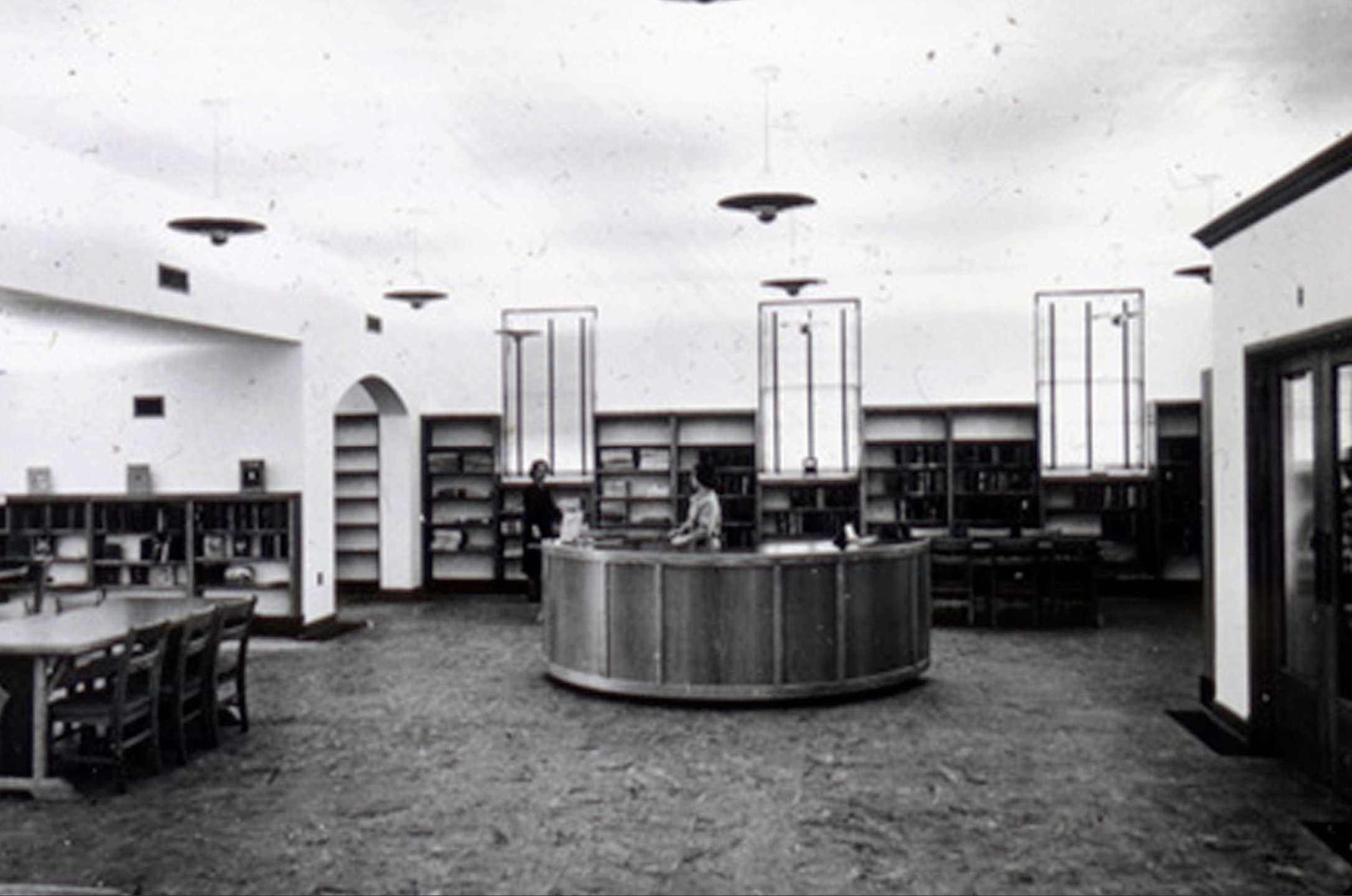 Visitors entering the new library from the south will see a large and colorful display in the lobby that encapsulates the history of the old facility it replaces. Along with vintage photographs, newspaper clippings, and maps, the attractive display includes drawers containing a few choice artifacts from the 1948 library. The memorial tablet installed in January 1949 is still on display, but now in the children’s wing, attached to a wall erected in 1957.[28]