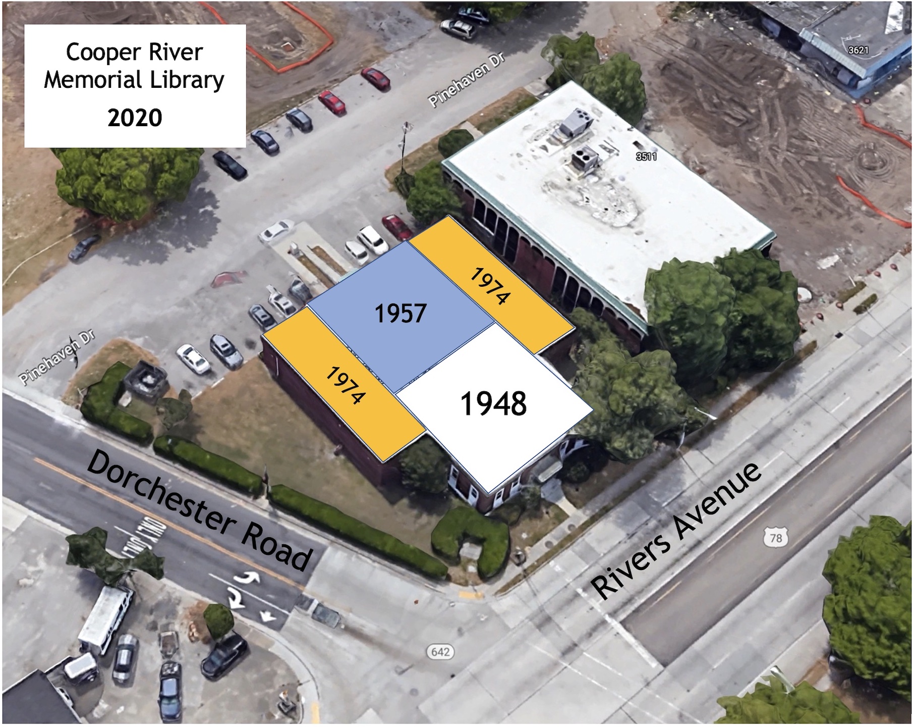 [13] News and Courier, 7 October 1947, page 1B, “Cooper River Library Bids Due October 15”; News and Courier, 17 October 1947, page 8B, “Geo. M. Canady Low Bidder on New Library.”