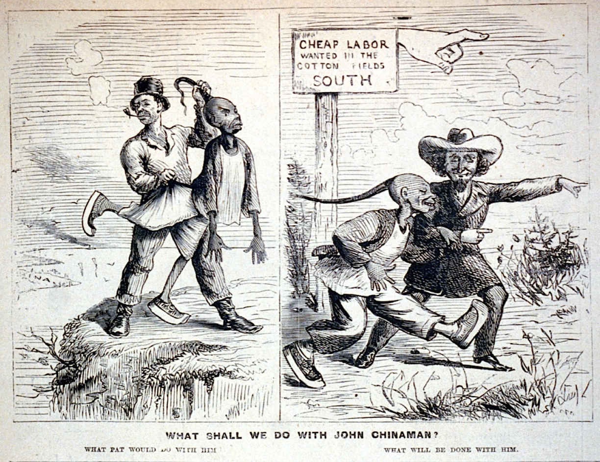 The construction of the transcontinental railroad demonstrated the viability of importing large numbers of Chinese laborers who were eager to escape the strife of their native land. Like the indentured servants of the earlier British colonies, the Chinese laborers or “coolies” worked on multi-year contracts and endured harsh conditions rewarded by low wages. The completion of the transcontinental railroad also opened the door to the possibility of transporting similarly large numbers of Chinese laborers to work in the fields of Southern plantations formerly cultivated by enslaved people of African descent. At this point, planters across the Southern states began to take a greater interest in the labor conditions of distant California.