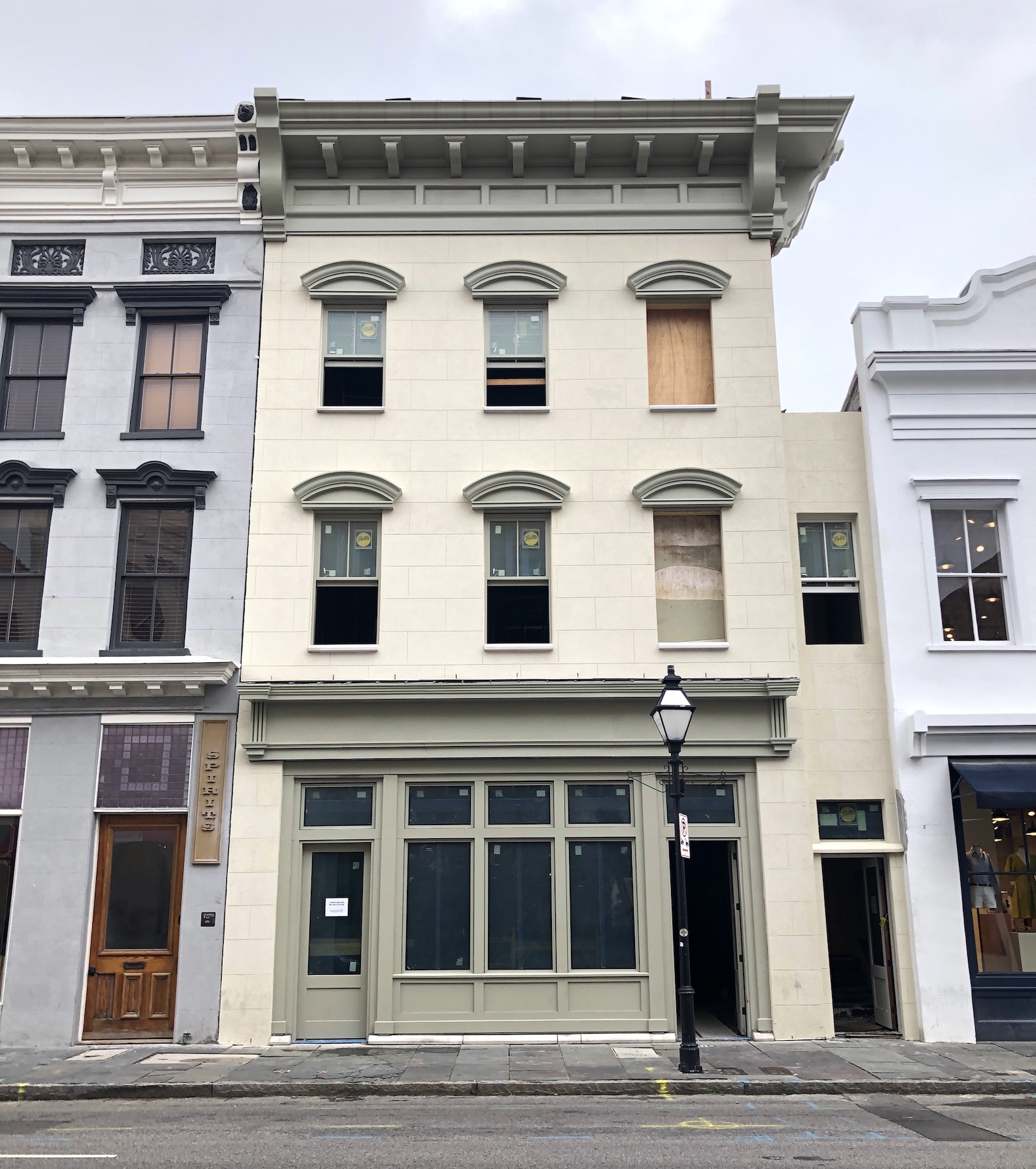 [34] The façade of No. 284 King Street was modified in 1948 according to a Neoclassical design by Charleston architect Augustus Constantine; see News and Courier, 4 April 1948, page 1-C, “Remodeled Bank Building.” The building underwent significant renovations in 2022–23, including the installation of new store-front windows that erased the changes made in 1948. The present façade more closely resembles the building’s nineteenth-century appearance.