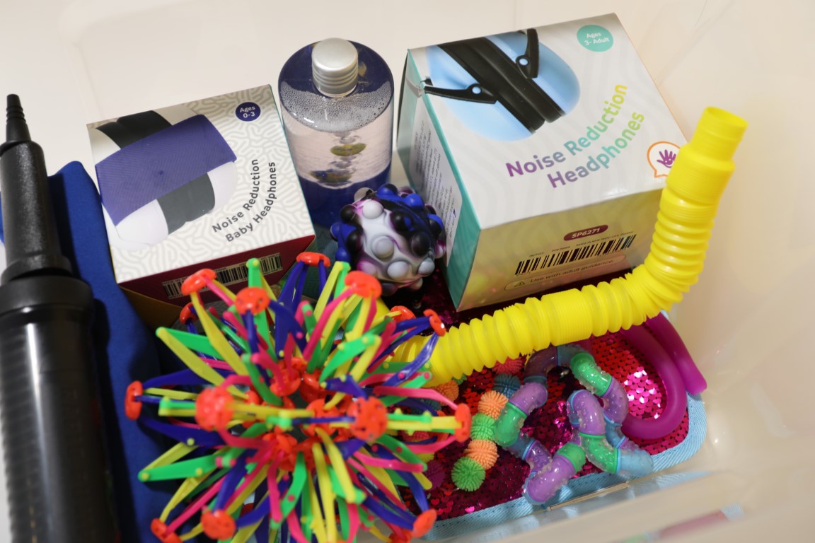 The sensory toolkits contain various items, curated in collaboration with the Lowcountry Autism Foundation, aimed at helping individuals reduce sensory overload, stay calm, and focus, including: