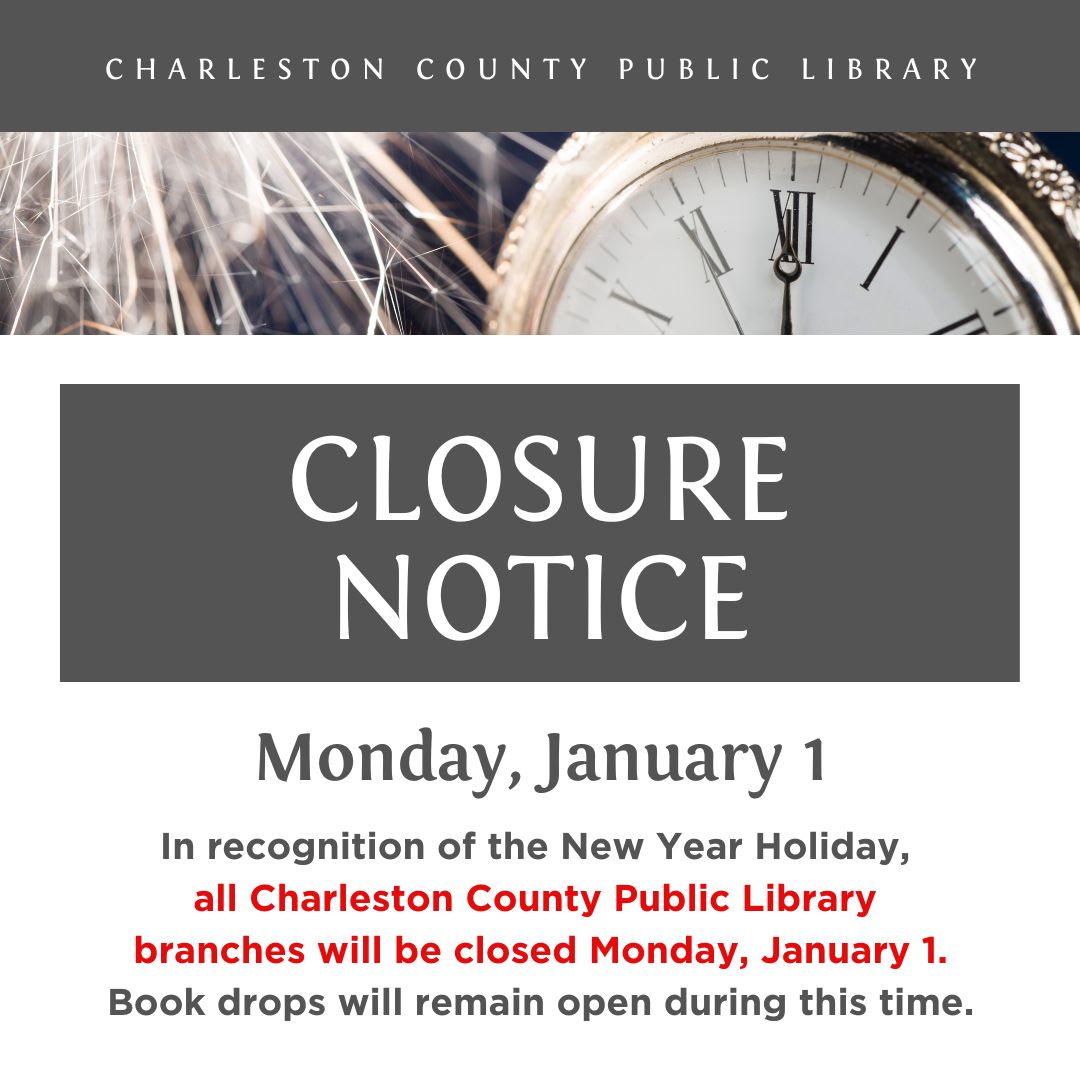 All CCPL branches will be closed on Monday, January 1, 2024 in recognition of the New Year holiday! We will reopen on Tuesday, January 2. Book drops will remain open during this time.