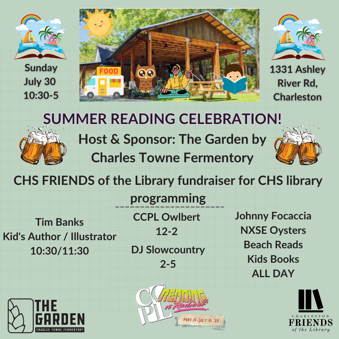 Join the Charleston Friends of the Library (CFOL) for a Summer Reading Celebration at the The Garden by Charles Towne Fermentory on Sunday, July 30 from 10:30 a.m. to 5 p.m.