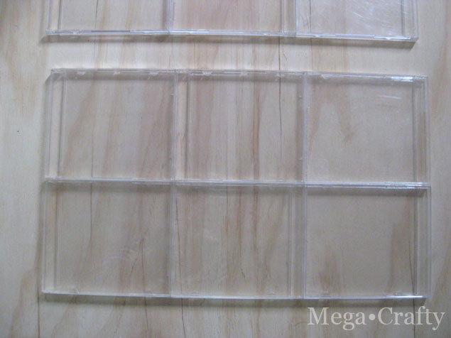 Start with clean CD cases. More than a few of mine needed a bit of dusting off and some old price tags removed. Since most of my cases also had black plastic disc holders in them, and I only needed the clear parts of the cases, I removed and discarded the black plastic. When you remove the disc holders you’ll notice it leaves an open space near the hinge. I’ll talk more about this in Step 2, I just wanted to point out that this is normal and nothing to worry about.