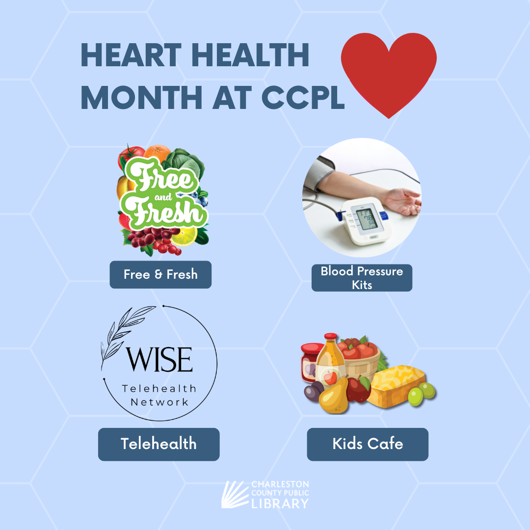 February is Heart Health Month and your local Charleston County Public Library is here to keep your heart rate in check! As part of our mission to enrich lives, we see the importance of enriching our communities with health education and healthy food options. This month we're highlighting four heart-healthy programs available to all CCPL patrons at no cost.