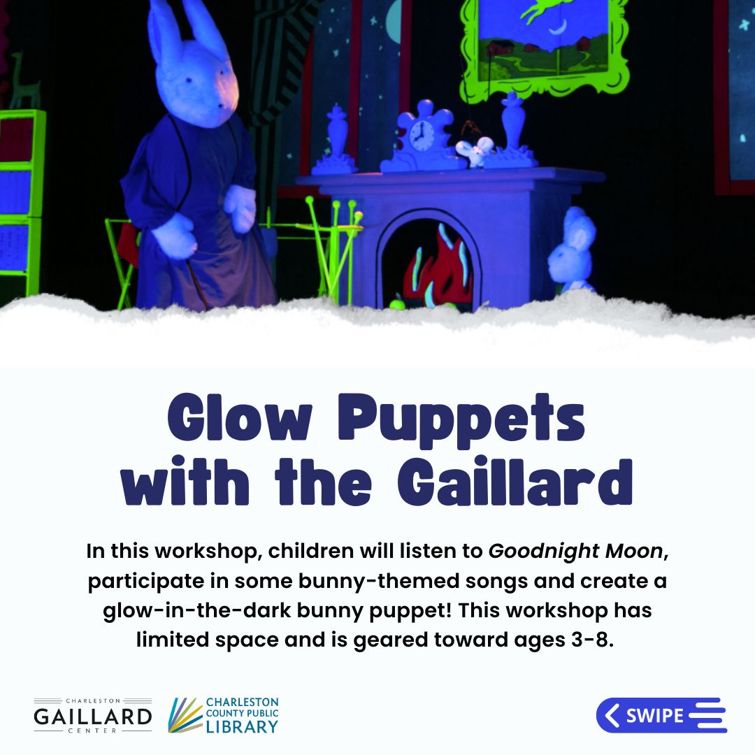 In this workshop, children will listen to Goodnight Moon, participate in some bunny-themed songs and create a glow-in-the-dark bunny puppet! This workshop has limited space and is geared toward ages 3-8.
