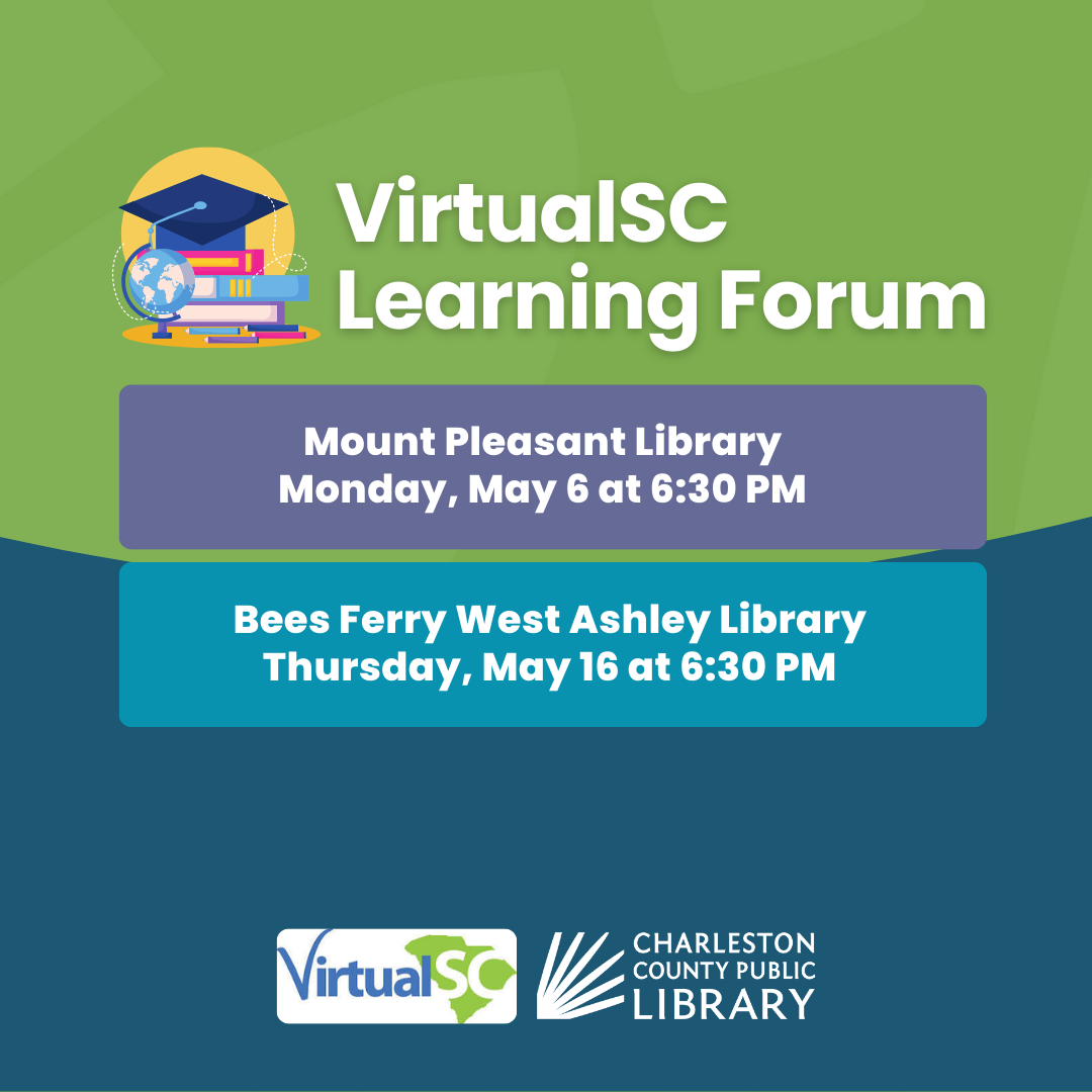 Join VirtualSC at select Charleston County Public Library branches to learn about their free online education programs for grades 6-12 and adults. These coures are taught by SC-licensed teachers. Get essential information and summer registration tips.