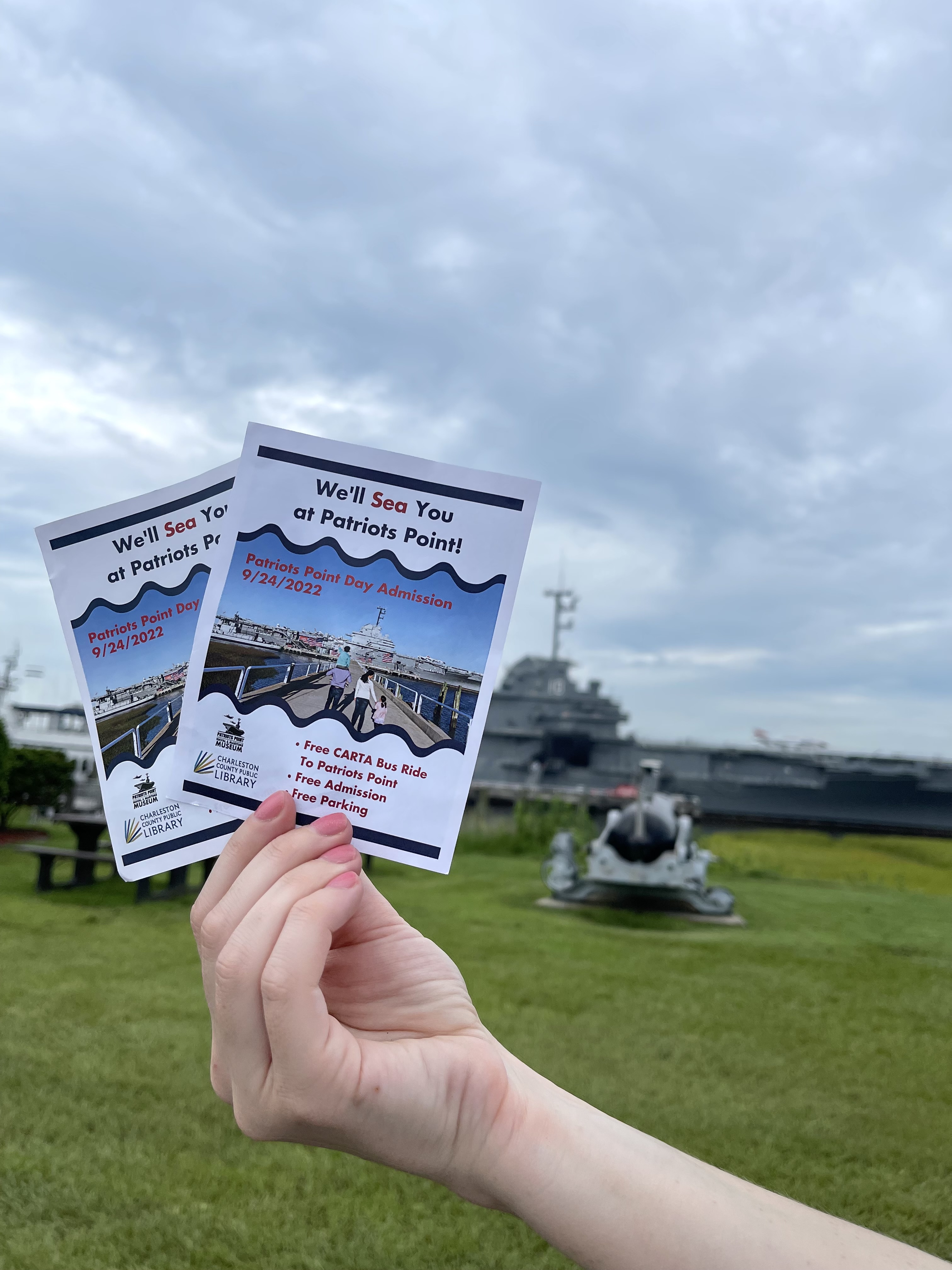Join us for Library Day at Patriots Point on Saturday, September 24, 2022! It's a community event in partnership with the Charleston County Public Library and Patriots Point Naval and Maritime Musuem celebrating history and reading. Event festivities are from 10 a.m. until 12 p.m. and will include storytimes, hands-on history, and giveaways! Visit the theater on the USS Yorktown for storytimes and special programming during the event.