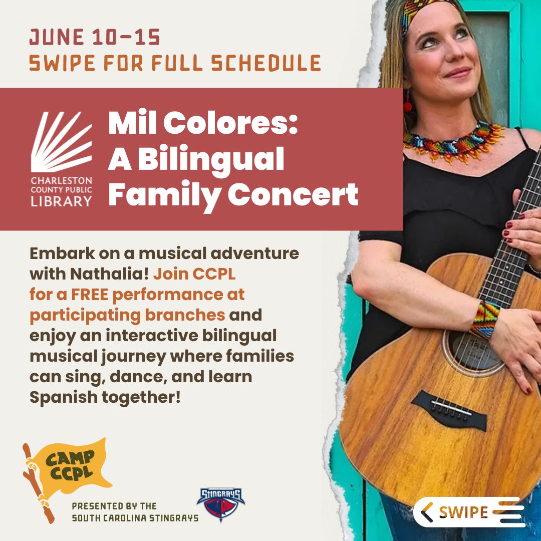 Embark on a musical adventure with Nathalia! Join CCPL for a FREE performance at participating branches and enjoy an interactive bilingual musical journey where families can sing, dance, and learn Spanish together!