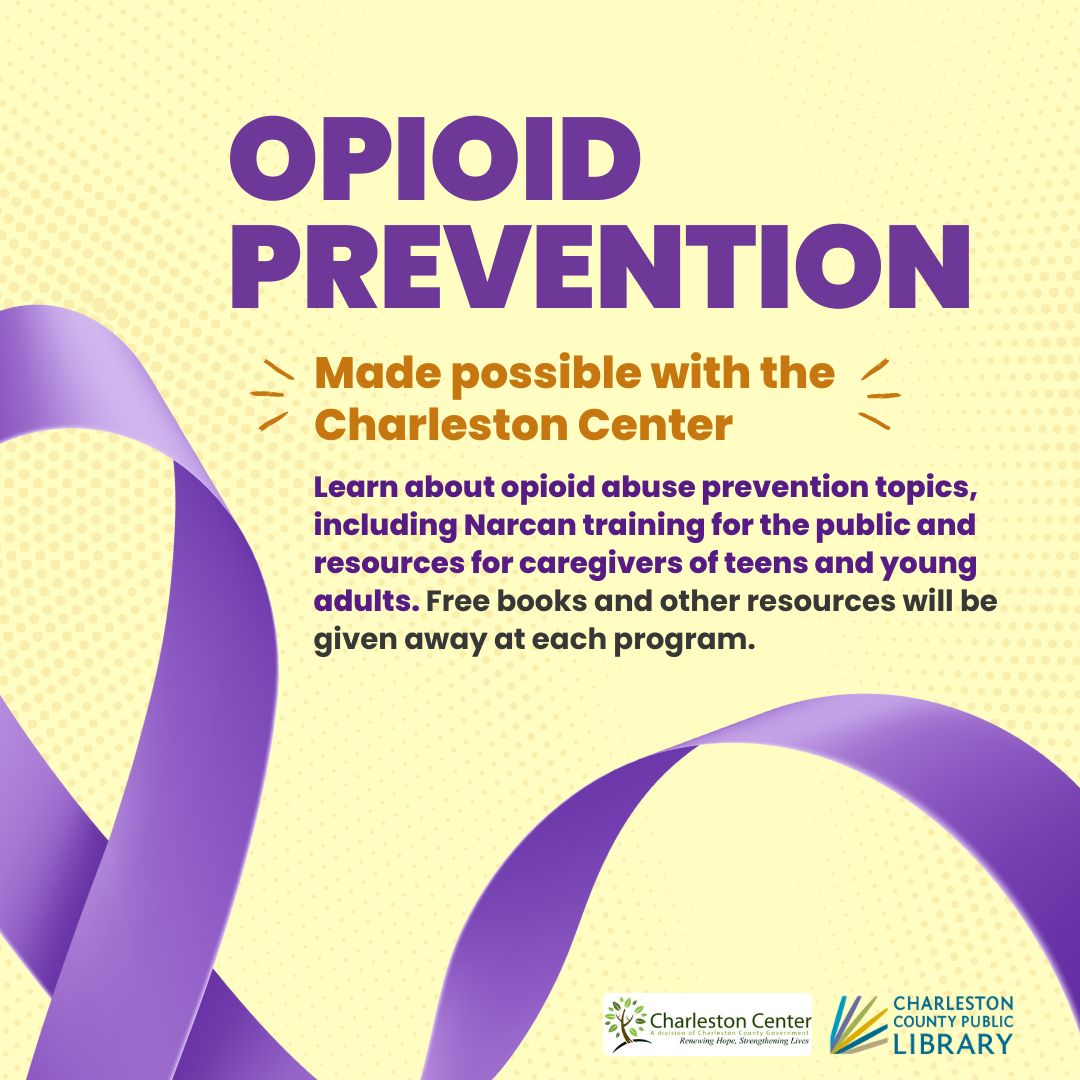 Learn about opioid abuse prevention topics, including Narcan training for the public and resources for caregivers of teens and young adults. Free books and other resources will be given away at each program. Made possible with the Charleston Center.