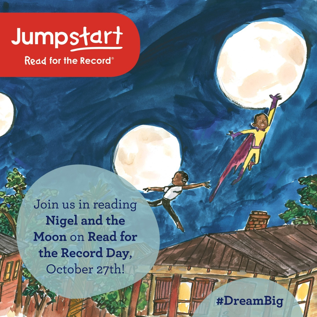 Help set a world record for the number of people reading or listening to the same book on one day! Join us at any of our branch locations on Thursday, Oct. 27, 2022 to participate in Jumpstart's Read for the Record. This year's book selection is “Nigel and the Moon" by SC author, Antwan Eady. From reading with your class to checking out a copy, there are many ways to participate! CCPL is making super easy for anyone to join in on the record setting fun; check your local branch's schedule for a Storytime and other programs that day, drop in to read one of our extra copies available, or reserve one our digital copies.