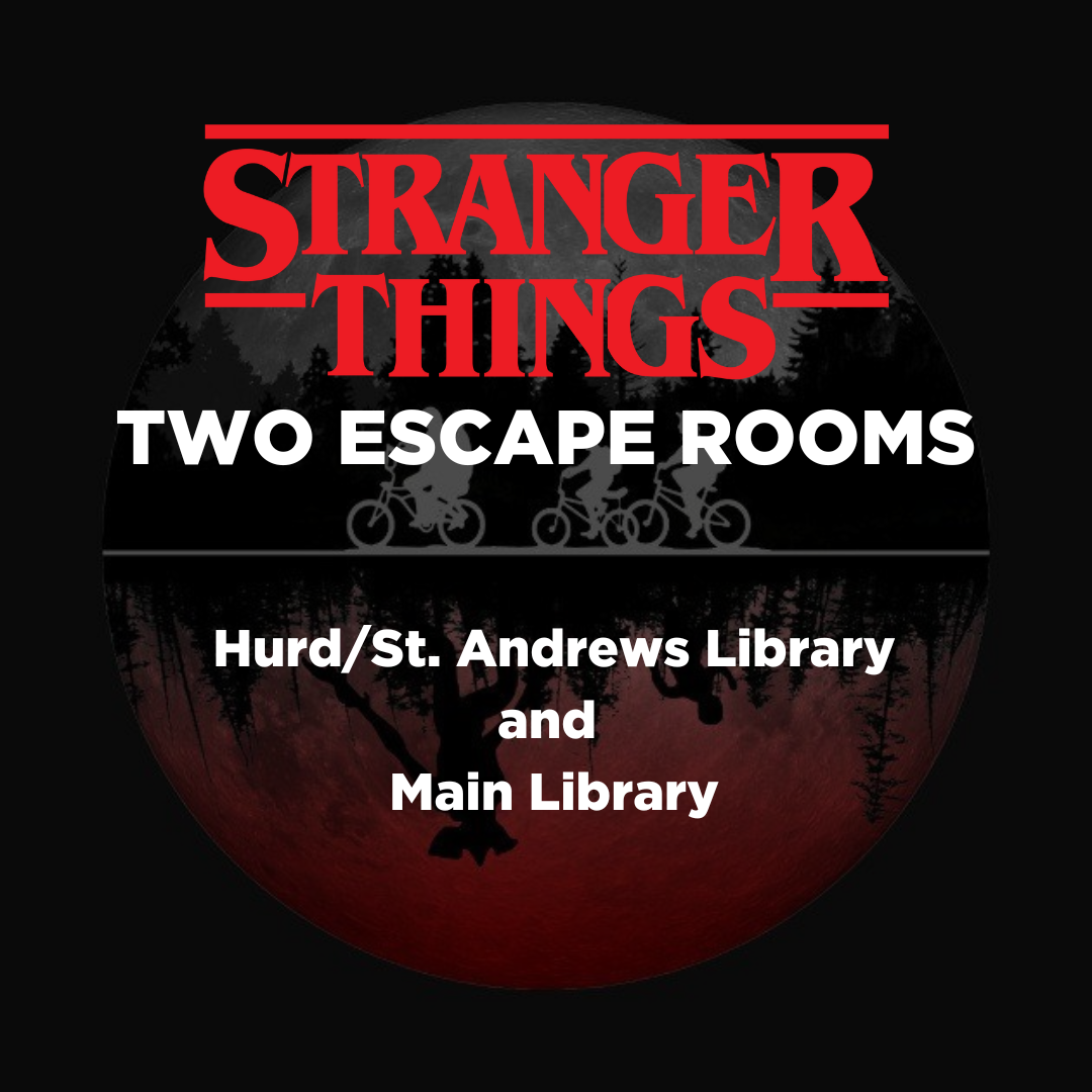 This year TWO branches are hosting Stranger Things themed escape rooms! Do you have what it takes to beat the clock, solve the clues, and escape the Upside Down?